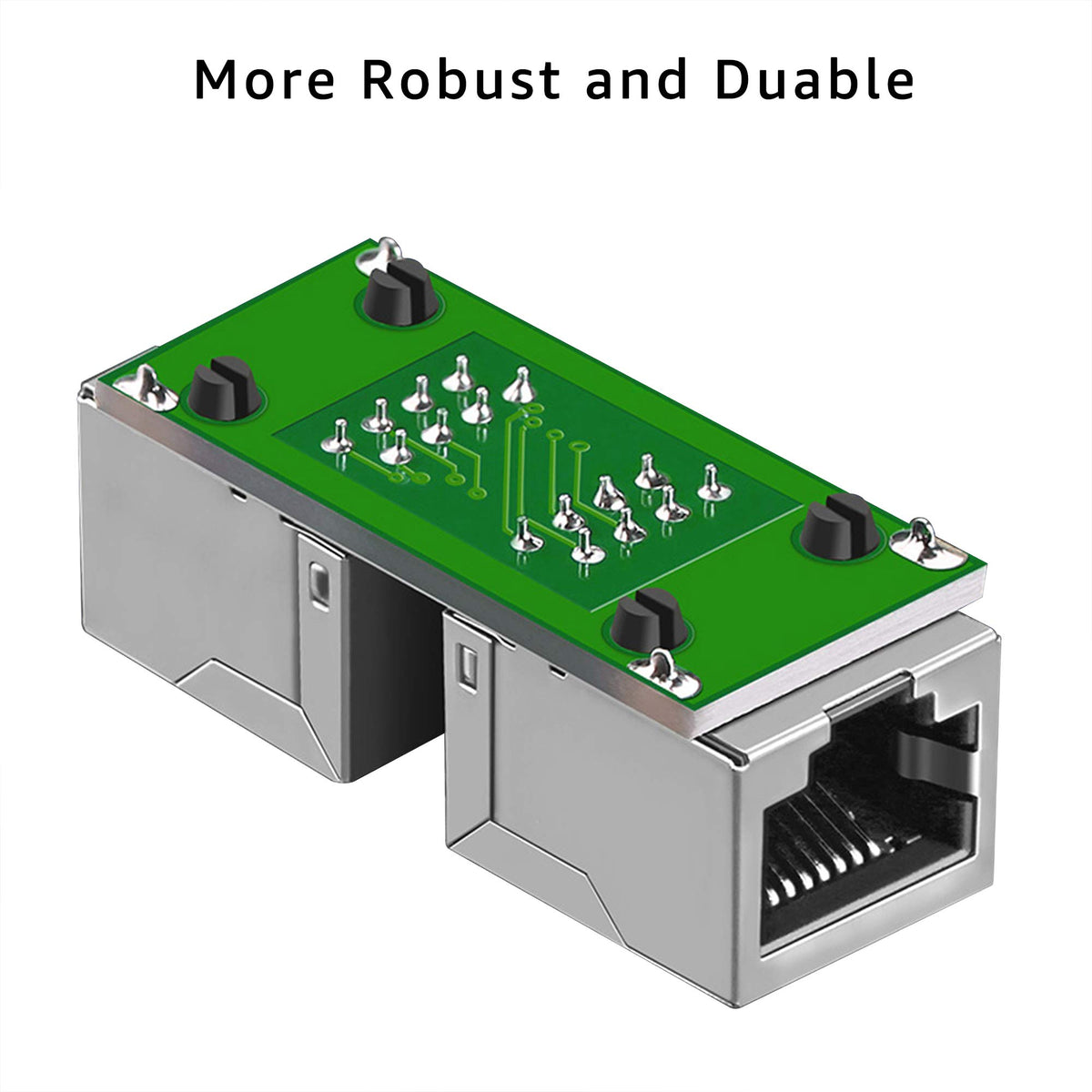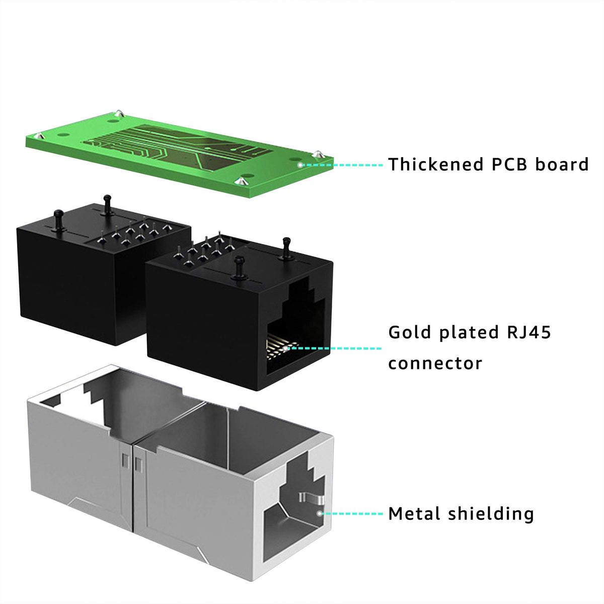 Q: What is the maximum network speed supported by this RJ45 Coupler?A: This RJ45 Coupler supports network speeds of up to 10 Gigabit, ensuring high-speed data transmission for your networking needs.