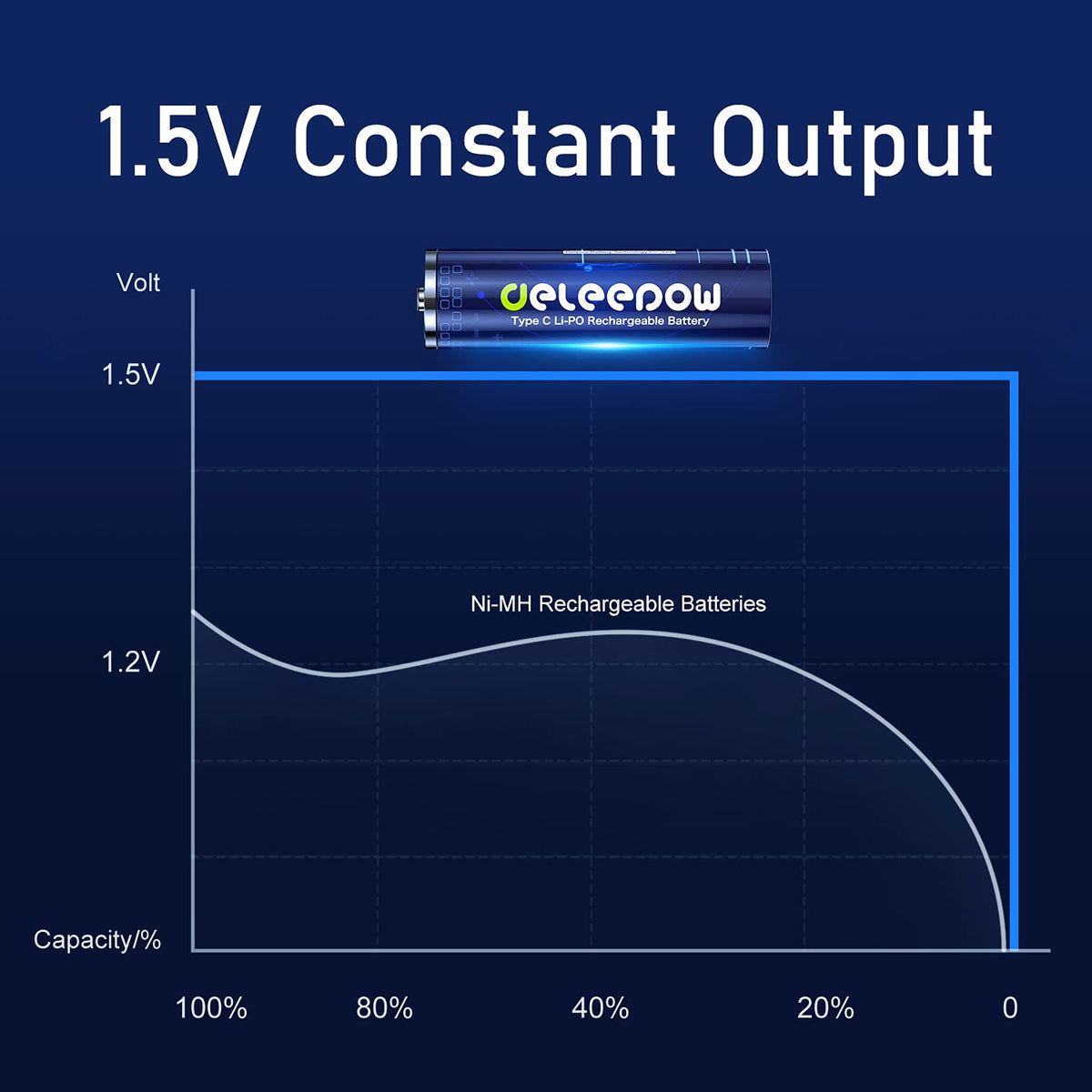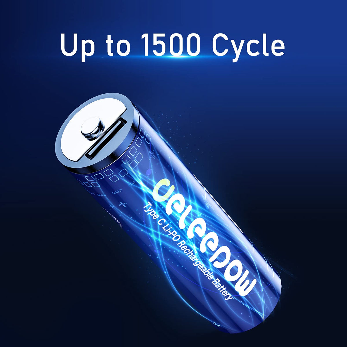Deleepow Rechargeable Aa Batteries Li-Ion 3400Mwh Aa Lithium Rechargeable Batteries 1500 Cycles With Usb Cable 4-Pack