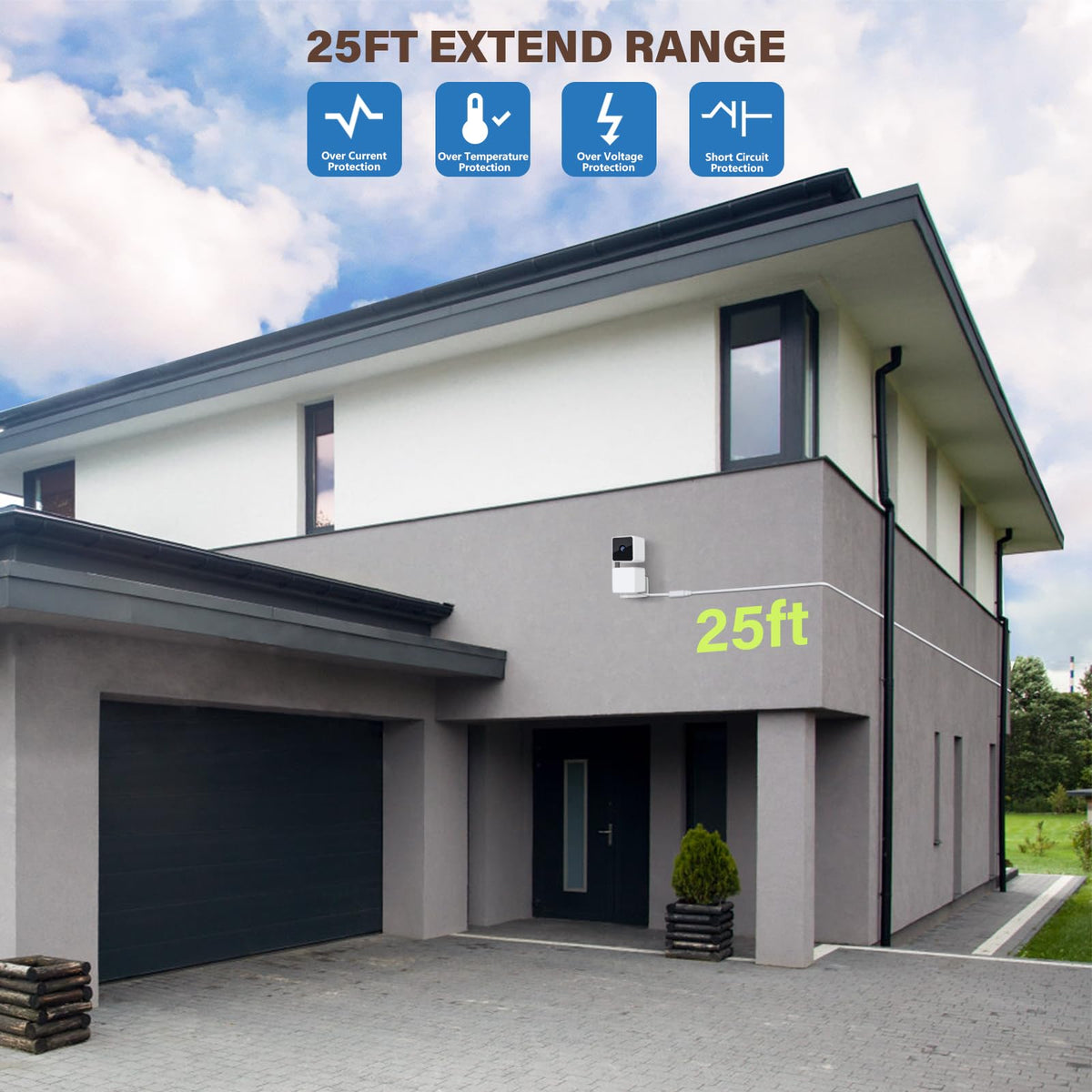 Q: How long is the delilyn Power Extension Cable?A: The delilyn Power Extension Cable is 30 feet long (9 meters), providing you with the flexibility to place your camera in a variety of locations while ensuring a continuous power supply.
