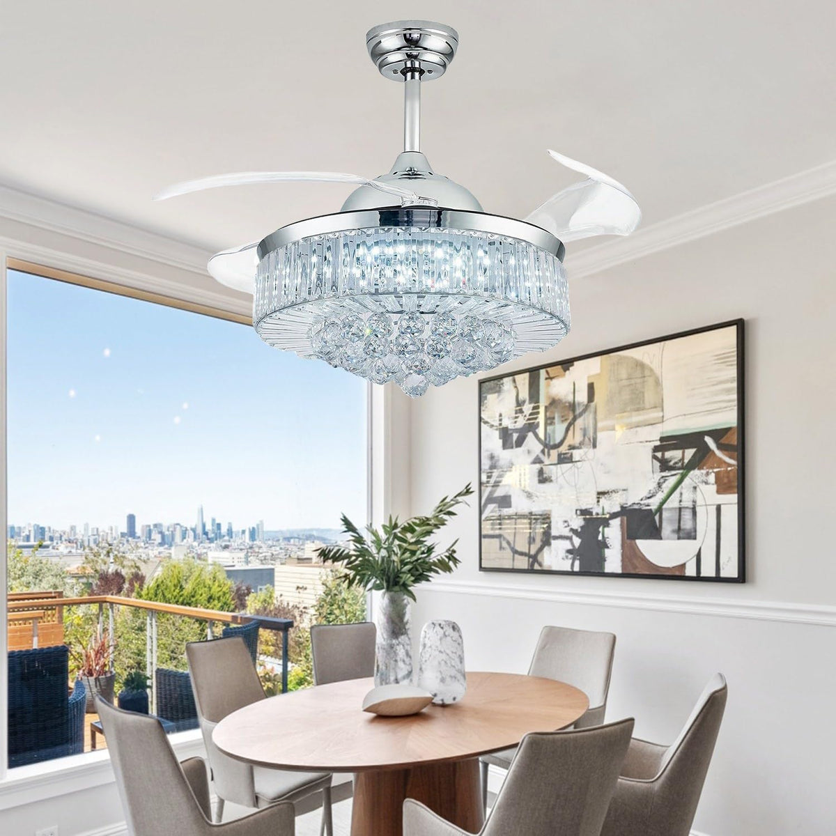Deliyfans 42 Inch Chandelier Ceiling Fan, Fandelier Ceiling Fan With Light Crystal Ceiling Fan, Fandelier For Bedroom, Living Ro