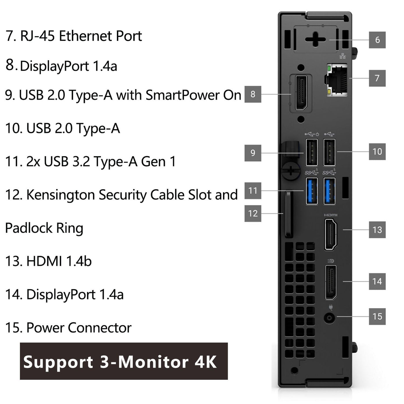 Type&Nbsp;Micro Form Factorprocessor&Nbsp;12Th Gen Intel Core I5-12500T (18 Mb Cache, 6 Cores, 12 Threads, 2.00 Ghz To 4.40 Ghz Turbo)Operating System&Nbsp;Windows 11 Promemory&Nbsp;64Gb Ddr5 Ramhard Drive&Nbsp;2Tb M.2 Pcie Nvme Ssdoptical Drive&Nbsp;No Optical Drivevideo Card&Nbsp;Intel Uhd Graphics 770Wireless&Nbsp;Intel Wi-Fi 6E Ax211, 2X2, 802.11Ax, Bluetooth Wireless Card, Internal Antennaportsfront:1 Usb 3.2 Gen 1 (5 Gbps) Type-A Port With Powershare1 Usb 3.2 Gen 2X2 (10 Gbps) Type-C Port1 Universal Audio Jackrear:1 Rj-45 Ethernet Port1 Usb 2.0 Type-A Port (480 Mbps)1 Usb 2.0 Type-A Port (480 Mbps) With Smartpower On2 Usb 3.2 Type-A Gen 1 (5 Gbps) Ports2 Displayport 1.4A Ports1 Hdmi 1.4B Port1 Power Adapter Portdimensions (Wxdxh)&Nbsp;1.42 In. (36 Mm) X 7.01 In. (178 Mm) X 7.17 In. (182 Mm)Weight&Nbsp;2.41 Lb (1.09 Kg)Power&Nbsp;90 W Ac Adapter, 7.4 Mm Barrelkeyboard And Mouse&Nbsp;Dell Wired Keyboard And Mouse, Black - Us English
