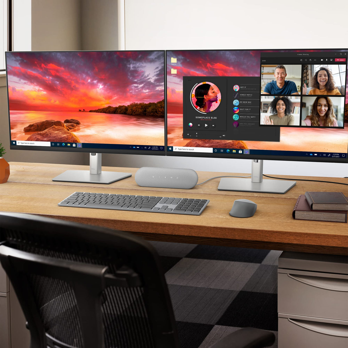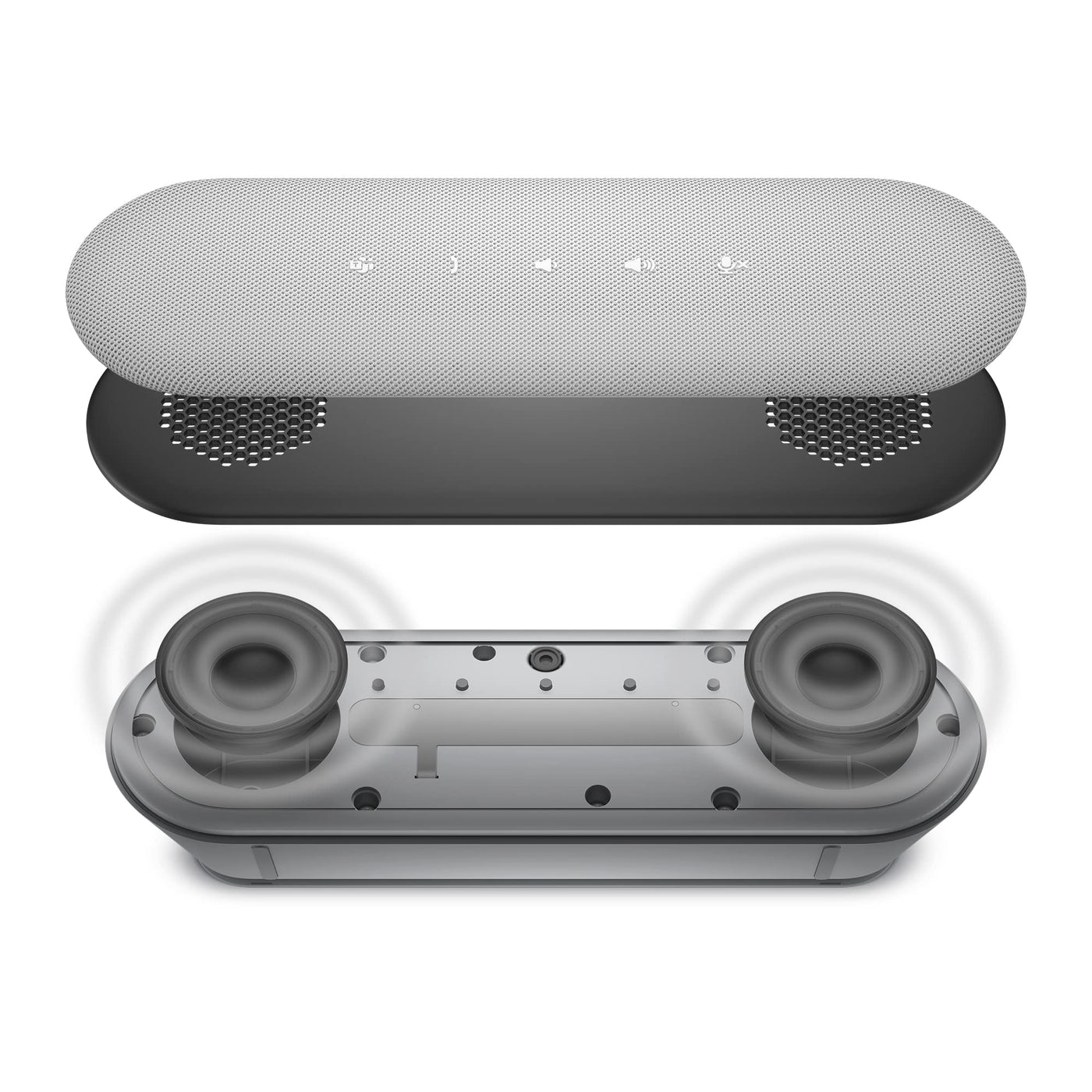 Dell SP3022 USB Computer Speaker for PC, Laptop, Monitor, Business Conference Mini Soundbar Speakerphone, AI Noise Echo Cancellation, Full Duplex Audio, 2 x 1.8W, MS Teams Certified Platinum Silver