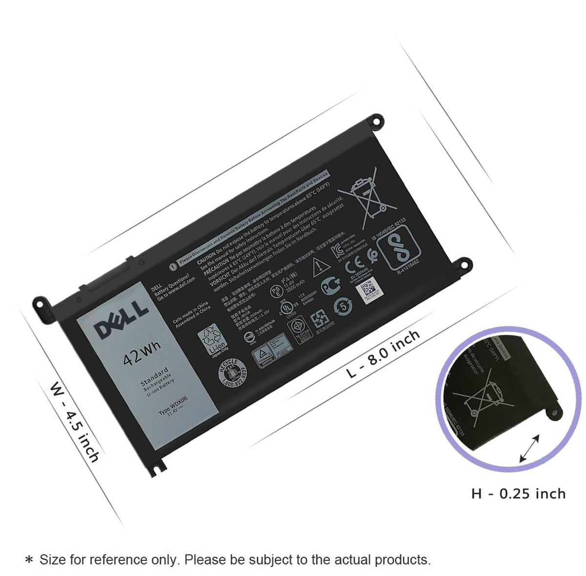 Specifications: Model: Wdx0R Battery Type: Rechargeable Li-Ion Polymer Condition: 100% Brand New Voltage: 7.6V Capacity: 42Wh Customer Service: Full Refund In 30 Days, 12 Months Warranty Compatible Part Number: Wdx0R 0Wdx0R 3Crh3 P69G001 T2Jx4 C4Hcw 0C4Hcw Fc92N Y3F7Y T2Jx4 P69G P58F001 P58F Fw8Kr Fc92N Cymgm 8Yprw Compatible Laptop Models: (Use ''Ctrl''+''F'' To Find Your Model) ? 13 5000 Series - 13 5368 / 13 5378 / 13 5379 / Ins 13Mf-2505T / Ins 13Mf-D1208Ta / Ins 13Mf-D1508Ta - Ins 13Mf-D2205Ta / Ins 13Mf-D2505Ta / Ins 13Mf-D2605Ta ? 13 7000 Series - 13 7368 / 13 7378 / Ins 13Mf Pro-D1508Ts / Ins 13Mf Pro-D1708Ts ? 14 7000 Series - 14 7460 / Ins 14-7460-D1525G / Ins 14-7460-D1525S/ Ins 14-7460-D1605G - Ins 14-7460-D1605S / Ins 14-7460-D1625S/ Ins 14-7460-D1725G/ Ins 14-7460-D1725S ? 15 5000 Series - 15 5538 / 15 5565 / 15 5567 / 15 5578 / 15Mf Pro-1508T / 15Mf 1508Ta - Ins 15-5567-D1525A / Ins 15-5567-D1525R / Ins 15-5567-D1545A / Ins 15-5567-D1625A - Ins 15-5567-D1625L / Ins 15-5567-D1625R/ Ins 15-5567-D1725A / Ins 15-5567-D1745A - Ins 15-5567-D1745L ? 15 7000 Series - 15 7560 / 15 7569 / 15 7570 / 15 7579 ? 17 5000 Series - 17 5767 / 17 5770 ? Vostro 14 5000 Series - Vostro 14 5468 / 14 5468D ? Vostro 15 5000 Series - Vostro 15 5568 / 15 5568D - Latitude 3189 3480 3580 3379 Series Tips: If You Are Not Sure Whether This Battery Is Suitable For Your Computer, Please Contact Us, We Will Give You A Satisfactory Answer As Soon As Possible.