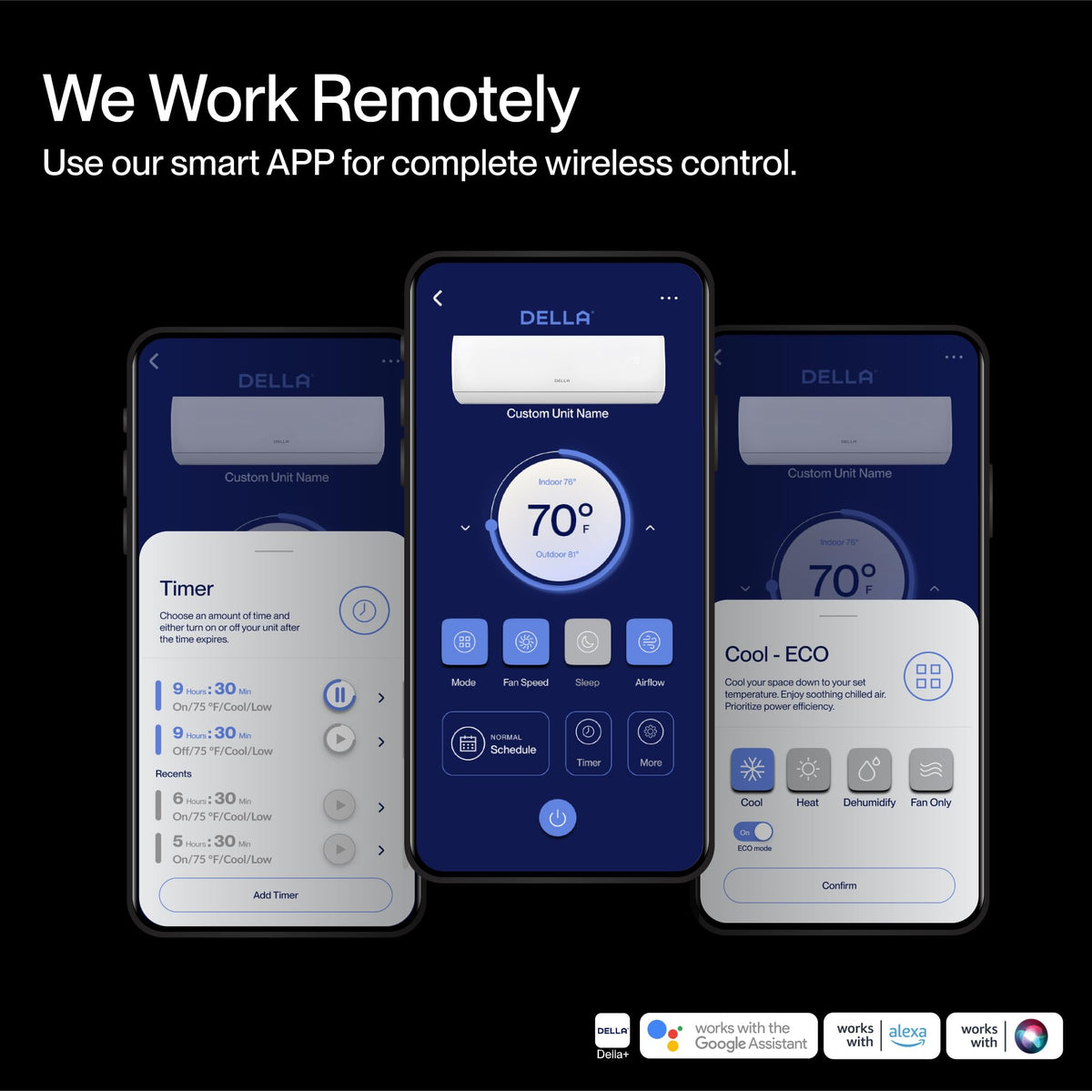 Q: Is the DELLA Motto Series compatible with smart home devices?A: Yes, the DELLA Motto Series air conditioner is WiFi enabled and works with Alexa, allowing for convenient smart home integration and voice control.