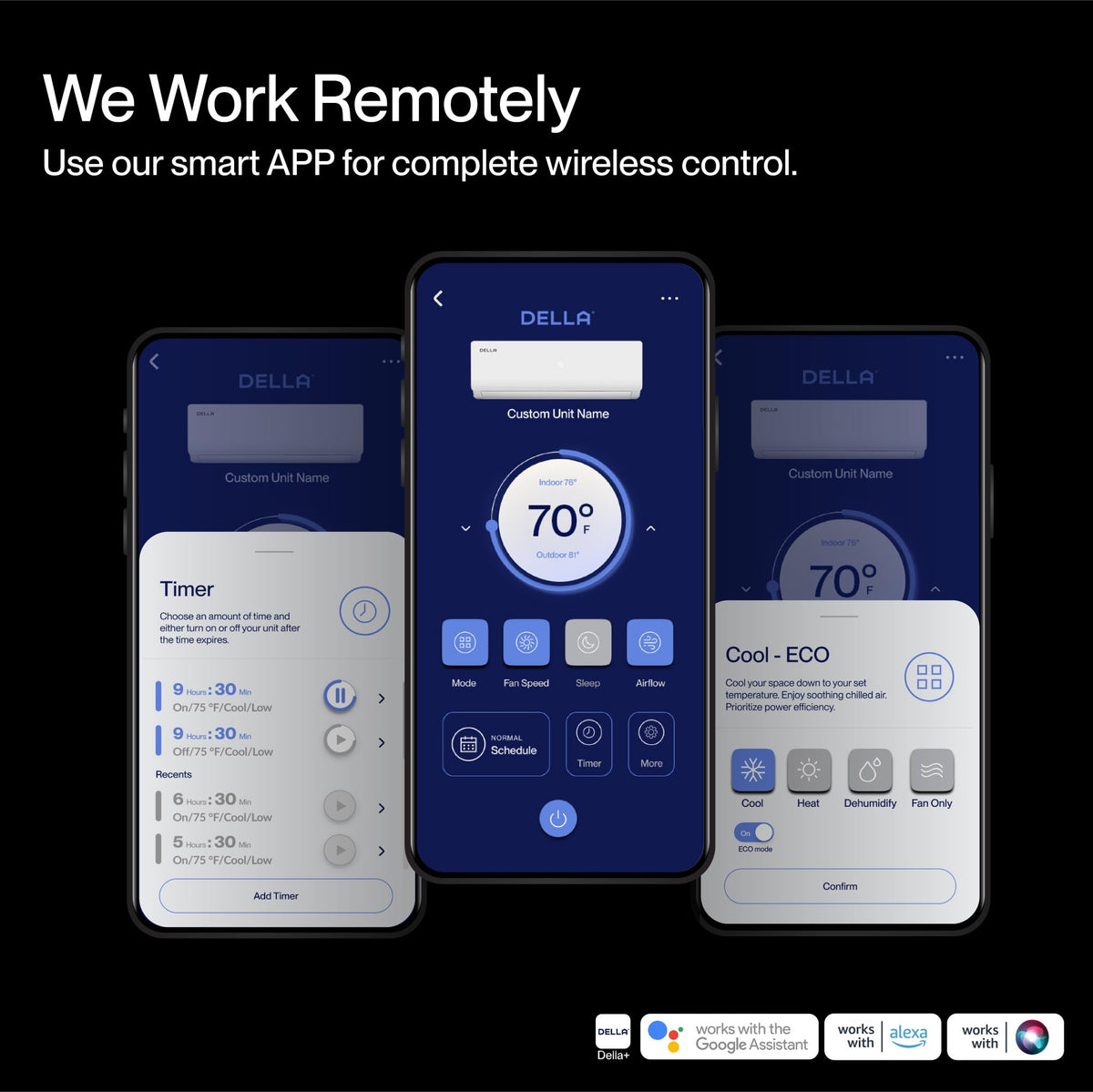 Q: Can the DELLA Mini Split Air Conditioner be controlled via a smartphone?A: Yes, you can easily control the DELLA Mini Split Air Conditioner using the DELLA app, in addition to the remote control for added convenience.