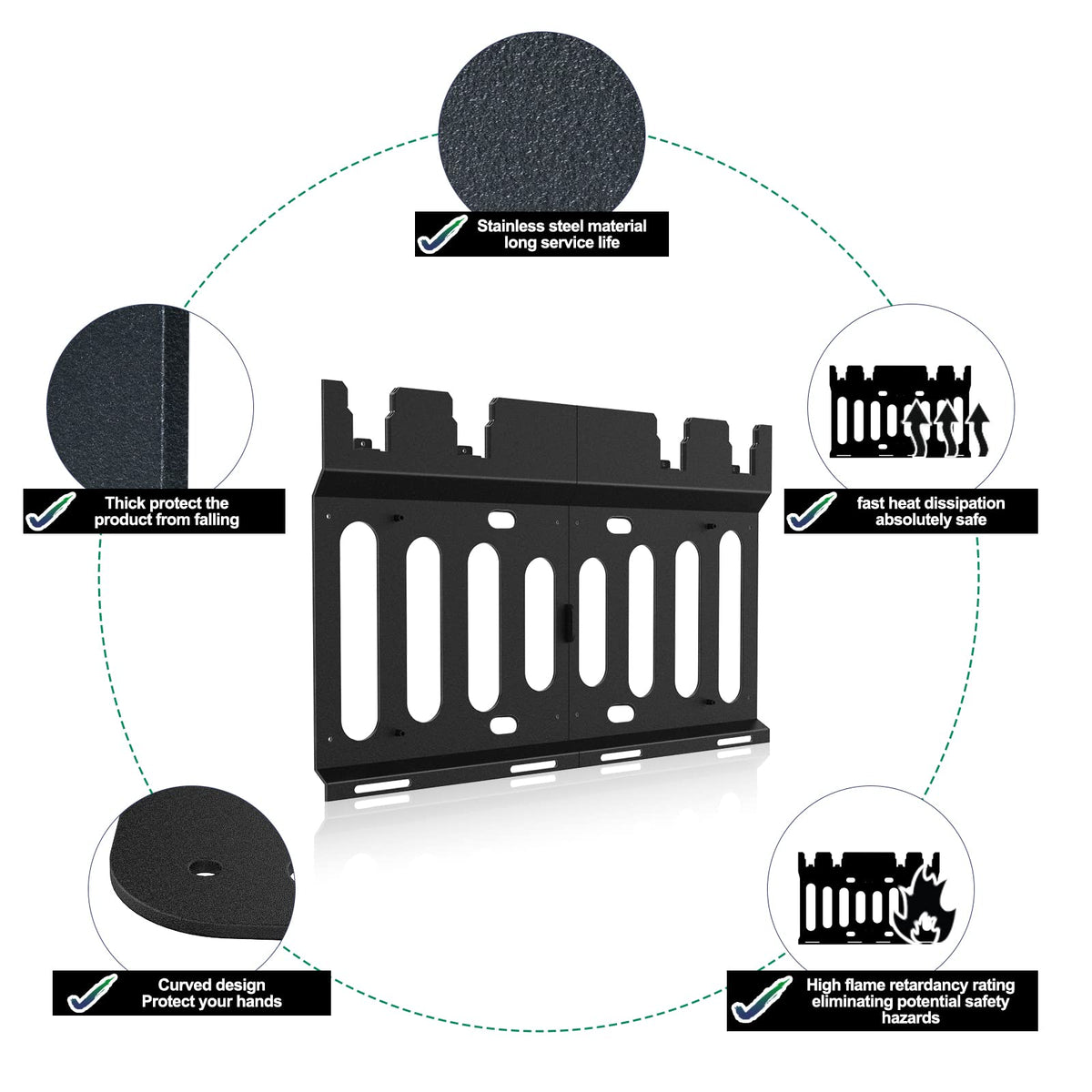 Space-Saving Tool Holder For Dewalt : Measured 22.8''X14.6''X0.1'', Demao Wall Mount Battery Holder For Dewalt Is Dedicated To Optimizing Space, Transforming Your Wasted Wall Space Into Efficient Tool Storage Areas, Improve Your Garage Organization. Note: The Front And Back Of The Tool Bracket Are Very Similar. Please Read The Instructions Carefully Before Installation To Prevent Installation Failure. | Multifunctional : Demao Drill Holder For Dewalt Tool Can Hold Up To 1*Dcb104 Charger, 4*12/20V Batteries And 2*Cordless Drills. Batteries Can Be Pushed From Above Into The Precise Fitting Grooves And Fixed Firmly. Premium Metal Material With Black Coating Finish, Very Sturdy And Strong Loading Capacity, Ensure Tools Will Not Fall From The Wall. | Easy To Assemble : Very Easy To Install. Just Connect The 2 Brackets By Screws First, Then Place The Wall Screws In The Corresponding Position, And Drill Them Into The Wall Or Wood, Then You Can Use Them Normally. Extra 5 Screws Are To Fix Your Charger. With Our Provided Professional Manual And Accessories, You Will Assemble A Perfect Tool Holder And Drills Organizer For Your Studio In Just Minutes. | What You Get : 2 X Tool Brackets; 3 Screws To Connect Brackets; 10 X Screws To Mounted On Wall; 10 X Anchors; 5 Screws For Fixing Chargers. It Sounds Like A Lot Of Screws There, But Once You See Them, You Will Know How To Install It In Seconds. | Satisfactory After-Sale Service : Demao Wall Mount Bracket For Dewalt Dcb104 Charger Is A Must-Have For Your Garage, Workshop. It Is A Great Gift For Men Also. If There Is Any Problem Or Damage To The Goods, Please Send Us A Message. 24Hours Online For You.
