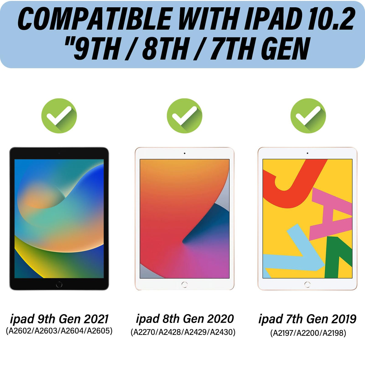 Q: Is this iPad case compatible with the 9th, 8th, and 7th generation iPads?A: Yes, this Deokke iPad case is specifically designed to be compatible with the 10.2 inch iPad 9th generation (2021), 8th generation (2020), and 7th generation (2019). Make sure to check the model number on the bottom of your iPad before purchasing to ensure compatibility.