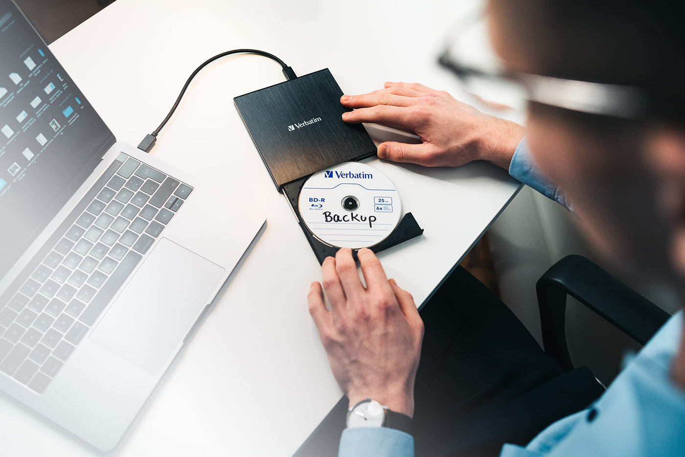 Q: What is the advantage of its slim design and lightweight construction?A: The slim design and lightweight construction of the Verbatim Blu-ray Writer make it ideal for portability, allowing users to easily carry it with their notebook or ultrabook without the need for a bulky power adapter, as it draws power directly from the USB port.