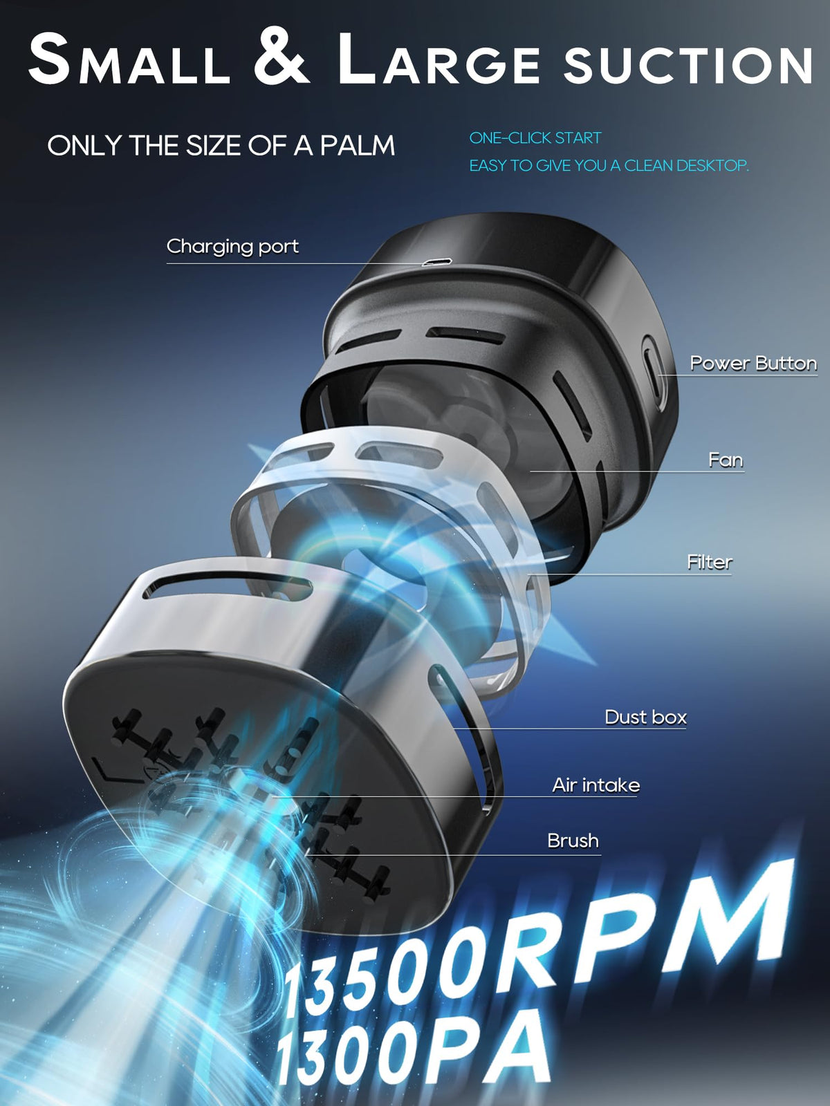 Q: Is the IGOKOTI Desk Vacuum Cleaner easy to use for elderly individuals?A: Absolutely! The IGOKOTI Desk Vacuum Cleaner is designed for ease of use with a one-key switch operation, making it suitable for both students and elderly individuals. Its lightweight and portable design allows for effortless cleaning.