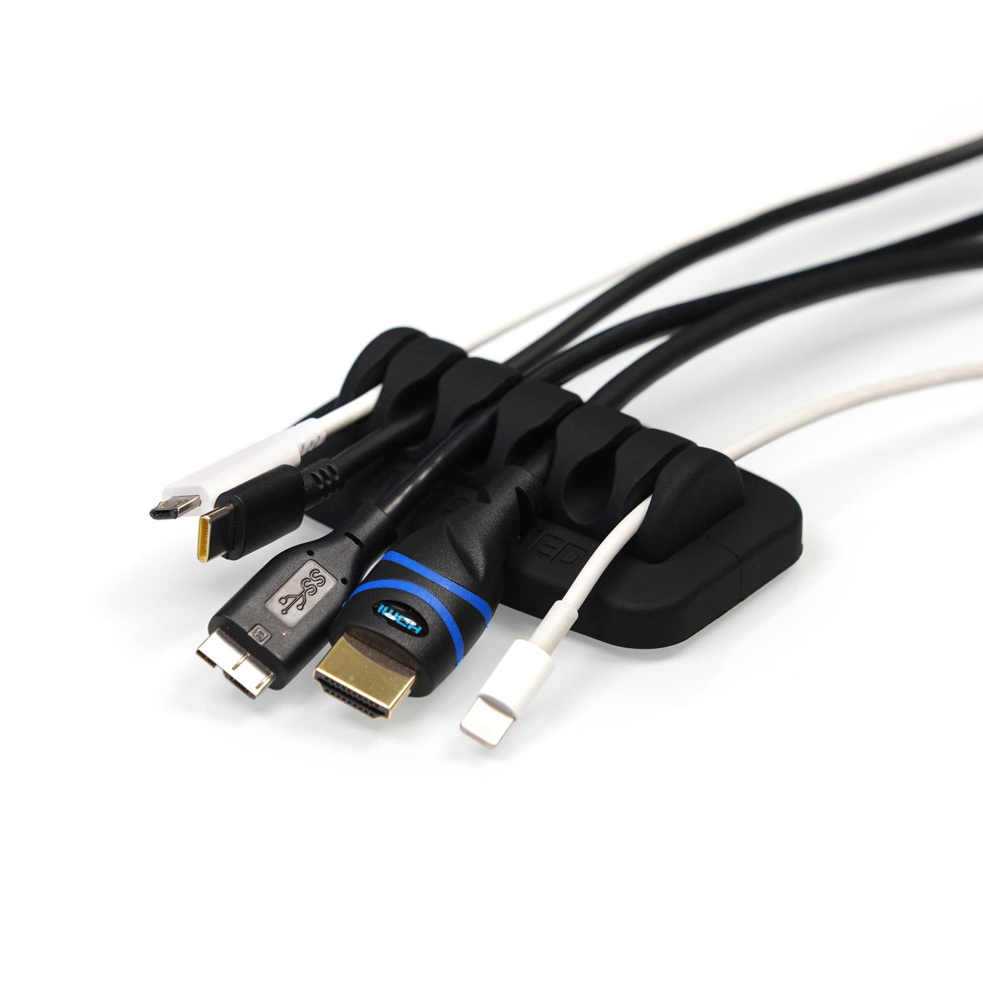 Desktop Cable Organizer, Weighted, Eco Friendly Silicone, No Bad Smell, Bundled With 4 Reusable Cable Ties (Black)