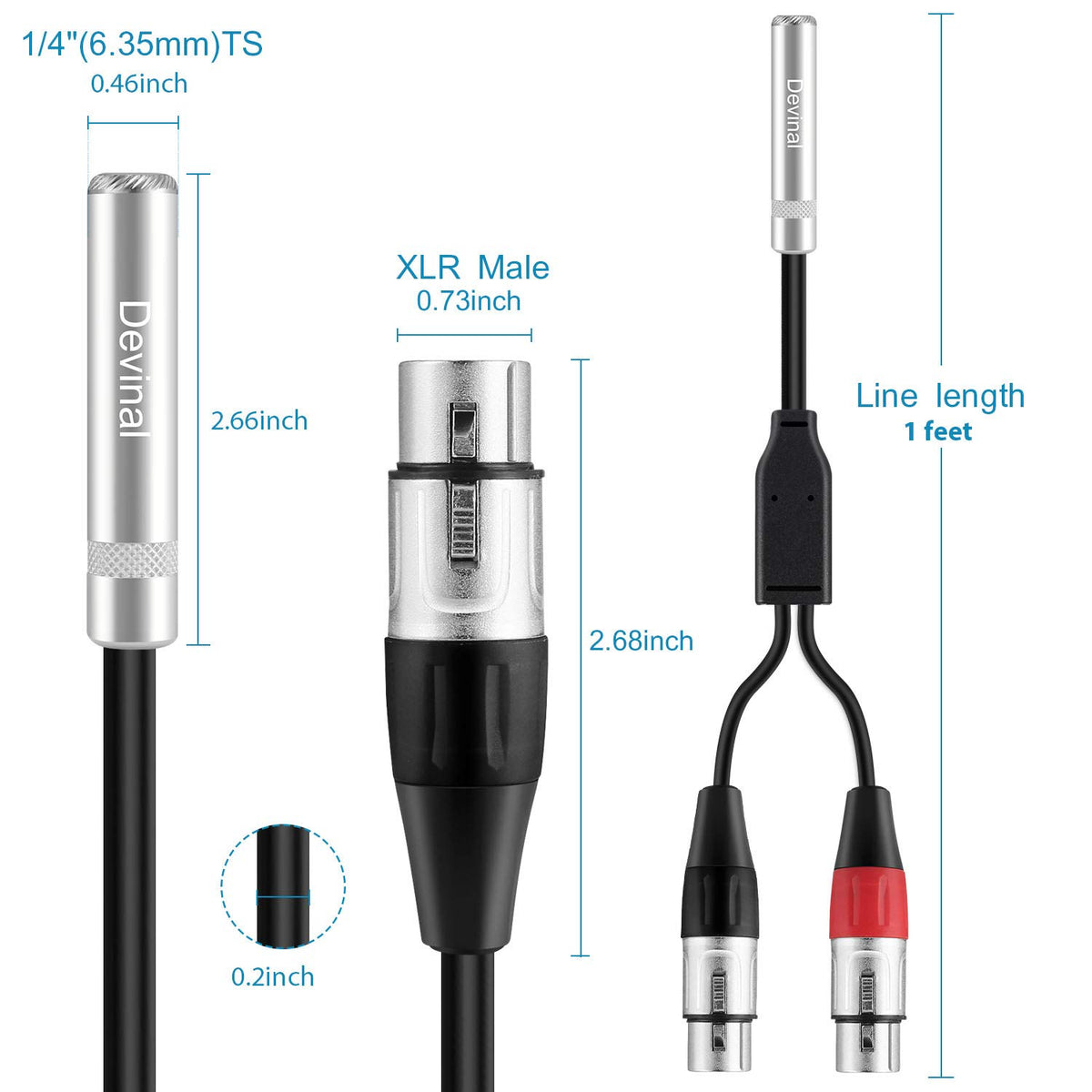 Devinal 1/4 '' Female To Dual Xlr Y Cable 6.35Mm Trs To 2 Xlr Microphone Converter 1Ft Audio Breakout Cord