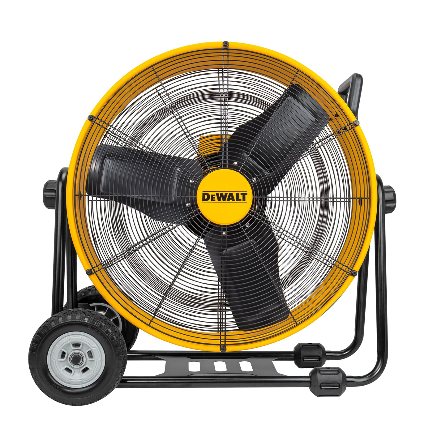 ?Variety Of Application?Dewalt 24 Inch Large Industrial Fan Is Ideal For Outside, Factory, Garage, Shop, Barn, Home, Greenhouse, Gym, Room, Patio, And All Areas That Need A Portable Warehouse Fan(With 12 Feet Power Cord). | ?Unique Trumpet-Shaped Drum?Dewalt Industrial Floor Fan With A Trumpet-Shaped Design Can Generate A Strong And Steady Airflow That Can Deliver Lower Temperature And Create A Comfortable Environment. Runs At 6500 Cfm And 1050 Rpm. | ?360? Adjustable Tilting?Dewalt Large Drum Fan Is Designed With A 360-Degree Adjustable Fan Head To Direct Airflow & Dynamic Circulation, You Can Effortlessly Direct The Airflow Exactly Where You Need It. | ?Stable & Reliable Design?Dewalt Hurricane Fan Use Durable Metal Construction With Sturdy Aluminum Blades That Can Withstand The Rigors Of Daily Use. Small Grid Spacing To Keep Out Accidental Fingers And Paws From Getting In. 5 Year Limited Warranty. | ?Easy To Move?Dewalt High Velocity Fan Features Semi-Pneumatic Tires For Move Smoothly Over Uneven Surpaces. The Non-Skid Foot Pad For Stability ,Folding Handle & Large Wheels Makes It Easy To Transport.