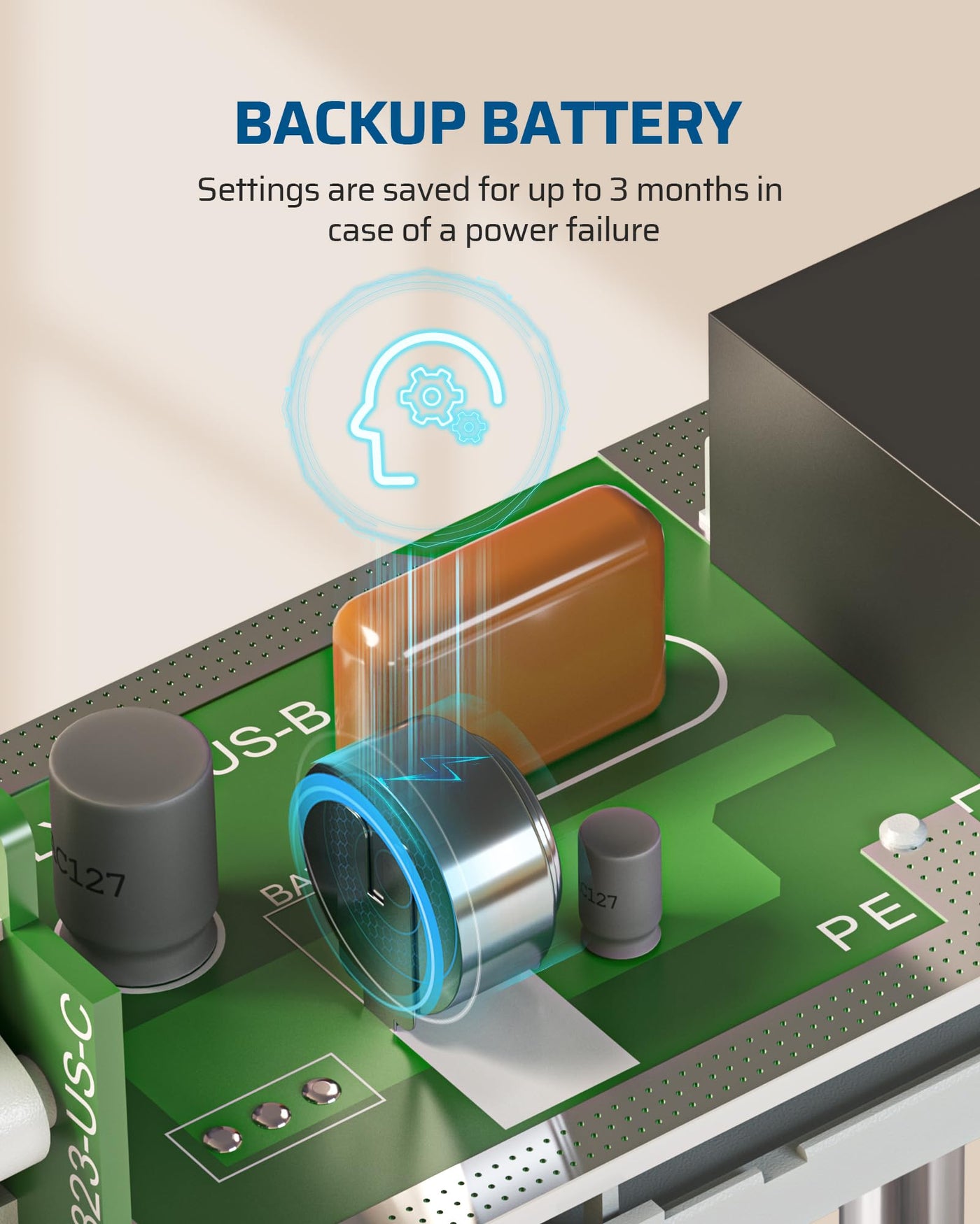 Q: Does the timer retain settings during a power outage?A: Yes, the DEWENWILS timer features a backup battery that retains your programmed settings for up to 3 months during power interruptions, ensuring your schedules remain intact.