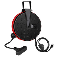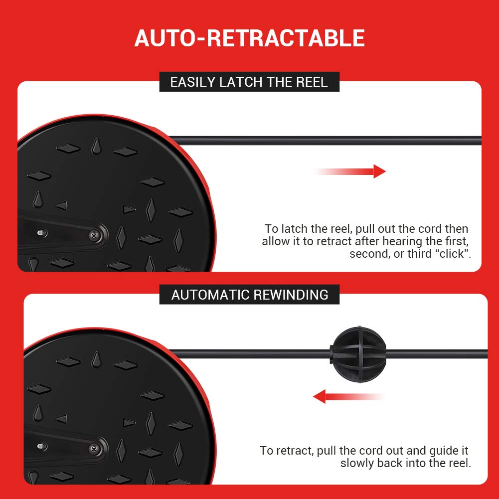 Dewenwils 30 Ft Retractable Extension Cord Reel With 3 Outlets Triple Tap, 10A Circuit Breaker, 16Awg3C Sjtw Power Cordmade Of Durable Metal Diamond Plate And 16-Gauge Sjtw Cord, Dewenwils 30 Feet Retractable Extension Cord Reel Is Sturdy And Rugged And Can Withstand The Abuses Of A Busy Garage Or Shop10A Circuit Breaker Protects Devices Against Short Circuit And Overloads Which Will Automatically Cut Off Power Supply When The Total Current Of The Connected Devices Exceeds 10A It Has A Clever Auto-Guide Rewind Mechanism To Avoid Kinks And Tanglesthe Power Cord Reel Retracts Quickly And Smoothly And The Ratcheting System Will Lock The Cord At Any Length Or You Can Select A Non-Lock Modethe 16-Gauge Sjtw Cord Can Resist Alkalies, Ozone, Acid, Cold Weather And Gives Flexibility, Lightness, And Durabilitythis Reel Is Both Wall And Ceiling Mountable And The Mounting Bracket Can Rotate 180 Degrees30 Feet Ceiling Wall Mountable Electrical Retractable Extension Cordspecificationsinput Voltage: 125Vac, 60Hzmax Power Rating: 10A, 1250Wcord: 16Awg, Sjtwcord Length: 30 Ftlead-In Cord Length: 4 Ftpackage Includescord Reel X 1Wood Screws X 2Bracket X 1Pin X 1Retaining Ring X 1Instruction Manual X 1Ceiling Or Wall Mountretractable Hanging Extension Cord Reel Can Be Mounted To A Wall To Save Floor Space Or Mounted To A Ceiling To Avoid Trailing Cables30 Ft Extension Cord And 4 Ft Lead-In Cordthis Retractable Extension Cord Reel Has A 30 Foot Sjtw Extension Cord On A Reel Which Makes Up A Convenient Power Station That Will Withstand The Rigors Of Work In The Garage, Home, Work Shop And On The Job Siteincreased Safetyhaving This Power Cord Reel In The Garage Or Shop Will Be An Increased Safety Feature As Wellit Can Be Attached To Both Walls Or Ceilings Helping You Keep Electrical Cords Out Of The Way When Not In Use