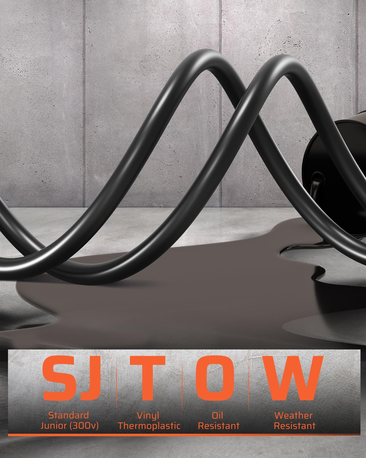 Q: Can this extension cord reel be used outdoors?A: Yes, the DEWENWILS Retractable Extension Cord Reel is designed for versatility and can be used outdoors. The 14/3C SJTOW cord is weather-resistant and flexible in low temperatures, making it suitable for garage, workshop, and outdoor applications.