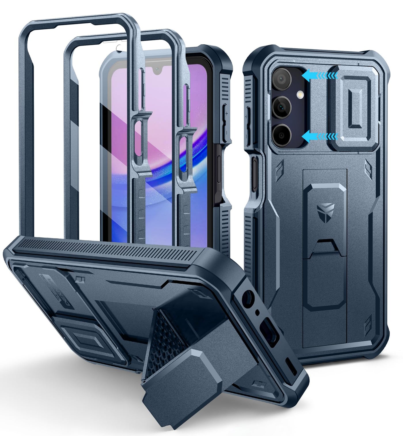?Military Grade Shockproof Case?Dexnor Galaxy A15 5G Phone Case consists of Dual layer PC back cover and Shockproof TPU bumper frame, can withstand 10ft military-grade protection. Slide camera cover and Raised thickened rubber in four corners effectively absorb shock, drops and fall. Only compatible for Samsung Galaxy A15 5G 6.5 inch (2024 New Release) | ?Slide Camera Protection?New upgraded with a dust-proof slide camera lens cover design that using a double-recessed rail for smooth sliding without snagging. There are fixed locks on both sides to ensure that cannot slide randomly and protect your privacy. 2mm raised camera slider to protect your camera lens from scratches, bumps, shocks. | ?2 Extra Front Frames? Includes two front frames, 1* with built-in screen protector + 1* without screen protector, to meet your different needs. This full-body case for samsung A15 5G supports fingerprint unlocking as well. Please reset the fingerprint after installing the phone case to keep the fingerprint unlocking high sensitivity. | ?Built-in Folding Kickstand?This Samsung Galaxy A15 5G Case with foldable stand supports hands-free viewing in portrait or landscape mode, you can freely adjust the angle as needed. The hidden kickstand will not be obtrusive. And just slide one of your fingers through the stand for a secure one-handed grip in outdoor activities. | ? Accurate Cutouts & Easy Access?Designed specifically for Samsung Galaxy A15 5G phone, the case fits perfectly and allows easy access to all ports, buttons and camera functions. We focus on providing quality products and the good service. If you have any questions, please feel free to contact us, we will reply and resolve your issue within 24 hours.