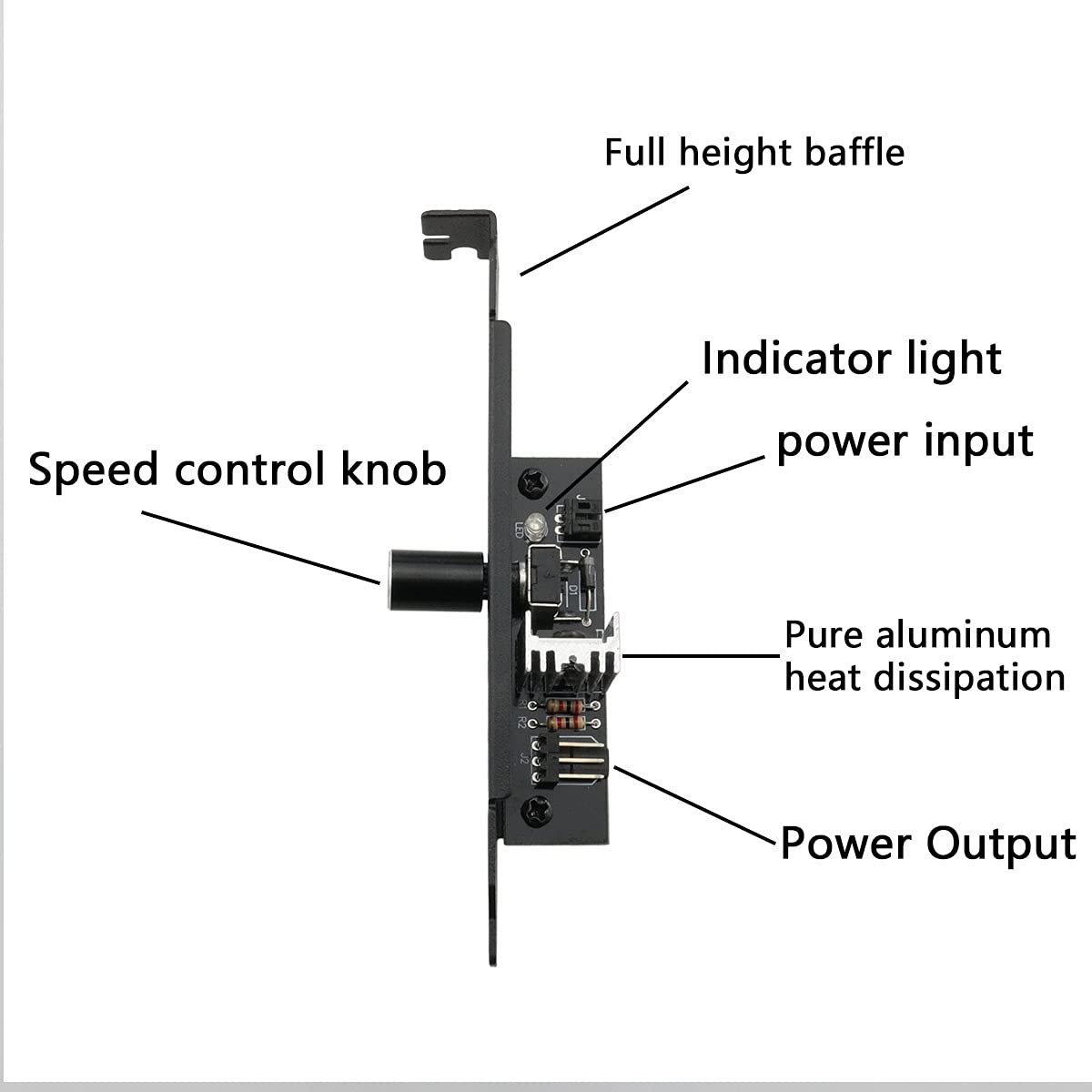 Specification: Type: Pc Cooler Cooling Fan Speed Controller Connectable Fans: 3 Groups Of Fans Fan Interface: Small 3Pin / Small 4Pin Power Supply Interface: Power Supply 4P Interface Speed Regulating Power: 30W (Max) Power Supply Voltage: 12V Voltage Regulation Range: 3V-12V The Wire Length Is About 50Cm / 19In Speed Regulation Mode: Manual Knob Speed Regulation Package Includes: 1 X Pc Cooler Cooling Fan Speed Controller The Governor Of The Product Can Support The Speed Regulation Of Three Fans Connected At The Same Time, And Supports Fans With Small 3/4Pin Interface. Professional Circuit, Reliable Quality And High Accuracy. The Pci Bit Installation Of The Chassis Is Simple, Compact And Does Not Occupy Space. On Board Heat Sink, Pure Aluminum Heat Sink Reduces Heat And Improves Overall Performance.