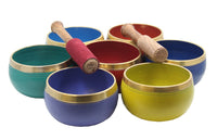 1. Root Chakra - Represents Our Foundation And Feeling Of Being Grounded. 2. Sacral Chakra - Our Connection And Ability To Accept Others And New Experiences. 3. Solar Plexus Chakra - Our Ability To Be Confident And In-Control Of Our Lives. 4. Heart Chakra - Our Ability To Love. 5. Throat Chakra - Our Ability To Communicate. 6. Third Eye Chakra - Our Ability To Focus On And See The Big Picture. 7. Crown Chakra - The Highest Chakra Represents Our Ability To Be Fully Connected Spiritually. This Set Of Singing Bowl Is Both Visually And Acoustically Appealing To Your Eyes And Ear. These Bowls Sing Very Easily And Produce Rich, Harmonic And Soothing Sound That Lasts For Long Duration Together They Produce Energetic And Vibrating Sounds Which Provided Stress Free Relaxation. These Singing Bowls Has Been Used For Meditation, Music, Relaxation, Personal Well Being, Healing Energy And Chakra Creation Etc. For Generations.