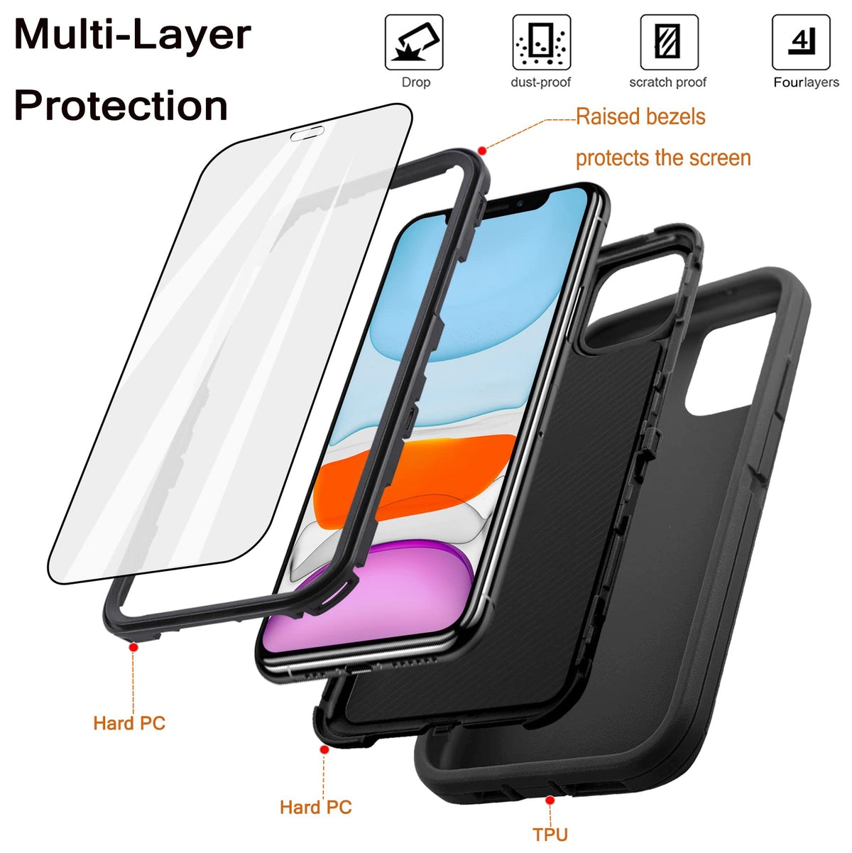 Specially Designed For Iphone 11&Nbsp61 Inches, Go Any Places And Enjoy Your Adventures Features 1 Full Body Protection 3 In 1 Detachable Design Works Well To Protect Your Devices 2 High-Quality Materials Flexible Combination Of Tpu And Pc Material Provides Shockproof Protection 3 Dust Protection Ports Case Keeps Ports Clean And Debris Free 4 Drop Tested Protection&Nbsp Enhanced Corners Cushion Your Phone In Accidental Drop 5 Scratch, Scrape And Fingerprint Defense Tempered Glass Prevents Your Iphone Screen From Cracking, Fingerprint And Sweating Marks Package Included 1 X 3In1 Case For Iphone 11,2 Tempered Glass Screen Protectors