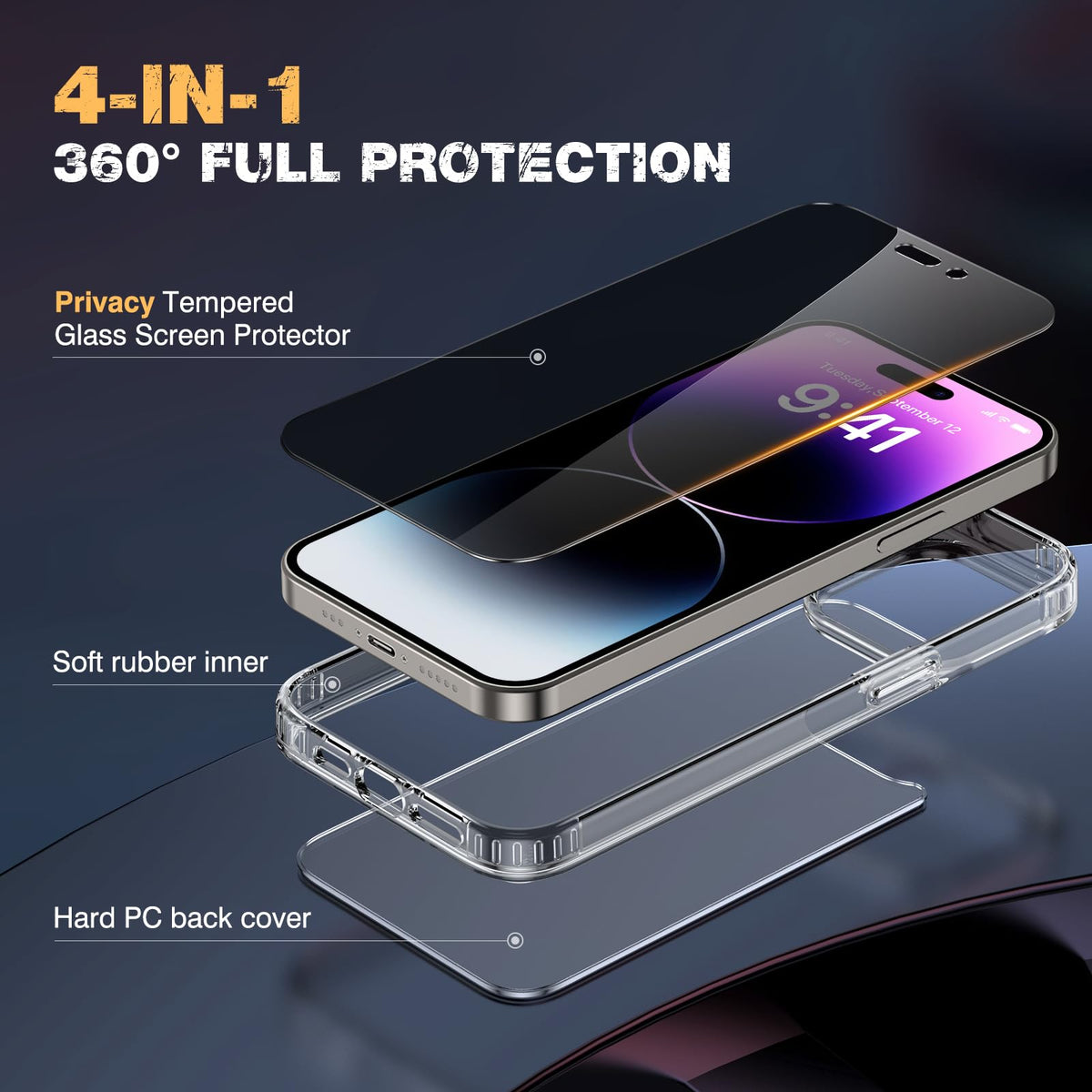 Specification:- Color: Clear- Compatibility: Compatible With Iphone 14 Pro - 6.1 Inch Only- Material: Tpu+Pc- Updated Tpu Bumper Thickness: 3.4 Mmpackage Include:1* Iphone 14 Pro Case1* Privacy Tempered Glass Screen Protectornote: Due To This Privacy Cover Will Darken The Image To Prevent The Peeking Eyes Near You, You Might Need To Turn Your Device Display Brightness Up A Bit When Use It.