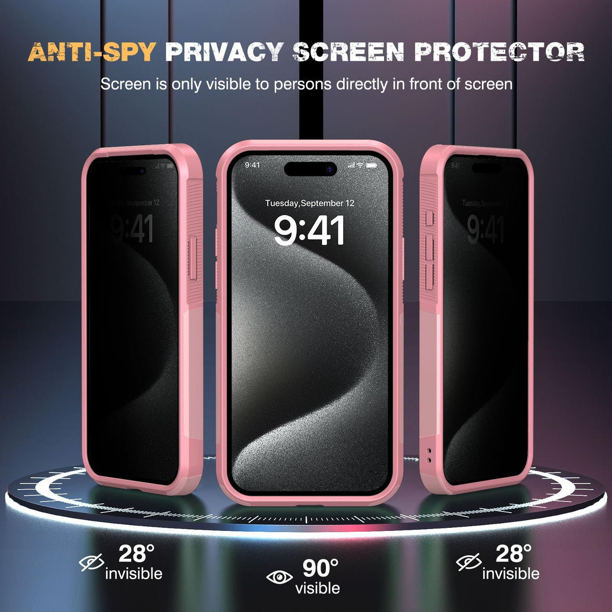 Diaclara Designed For Iphone 15 Pro Max Case, [With Privacy Screen Protector] [Anti Spy] [Military Grade Drop Protection] Heavy