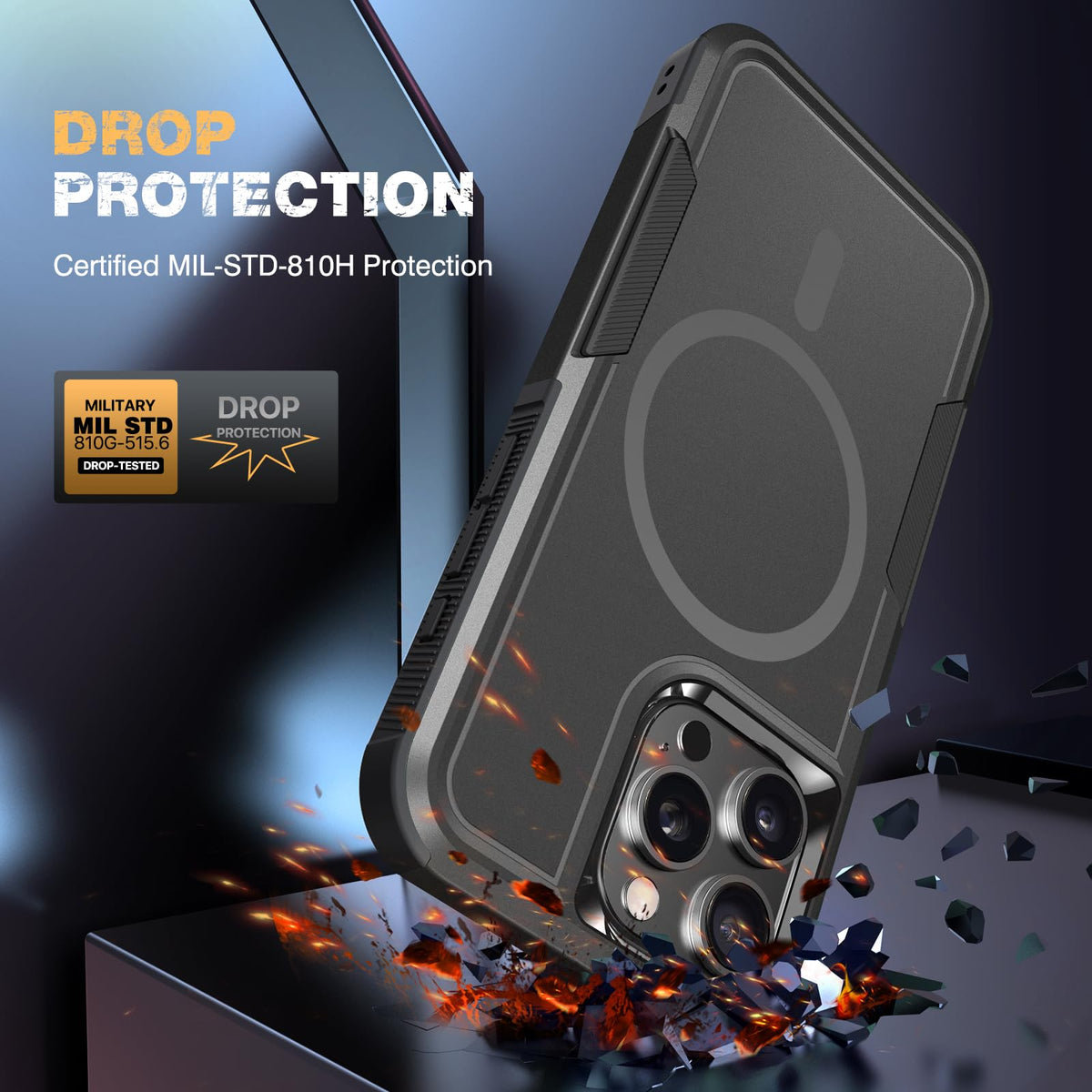 Q: What kind of protection does this case offer?A: This case provides military-grade protection certified by MIL-STD-810H, ensuring durability against drops and collisions. It features a 360° full-body rugged design, including a TPU inner cover and a hard PC back cover.