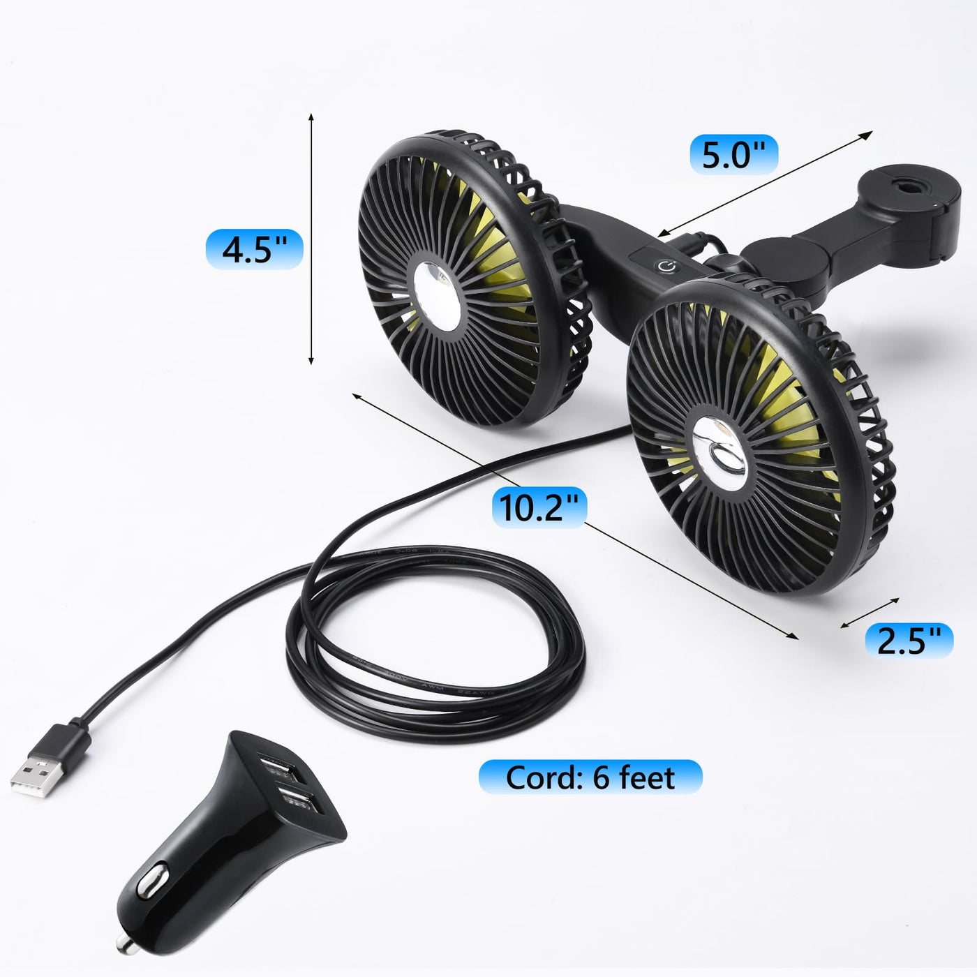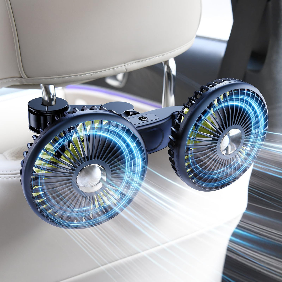 Dicmky Dual Head Car Fan Upgraded Rechargeable Design, Built-In 2000Mah Battery, Can Be Used Unplugged After Fully Charged. The Fan Body Can Be Adjusted At Any Angle, Which Can Blow Both The Front Row And The Back Row, Making The Air Circulation In The Car Smoother. It Has Retractable Arms That Can Be Pulled In To Blow Air In The Back To Keep Passengers Cooler; When Not In Use It Can Be Folded Behind The Headrests Without Taking Up Too Much Space. It Comes With A 70-Inch Long Usb To Typc-C Charging Cable That Makes It Very Easy To Charge It In The Car. It Has Three Adjustable Wind Speeds For Different Temperature Conditions. If You Often Travel With Your Family In The Summer, Having One Of These Fans For Your Rear Passengers Is A Great Addition.