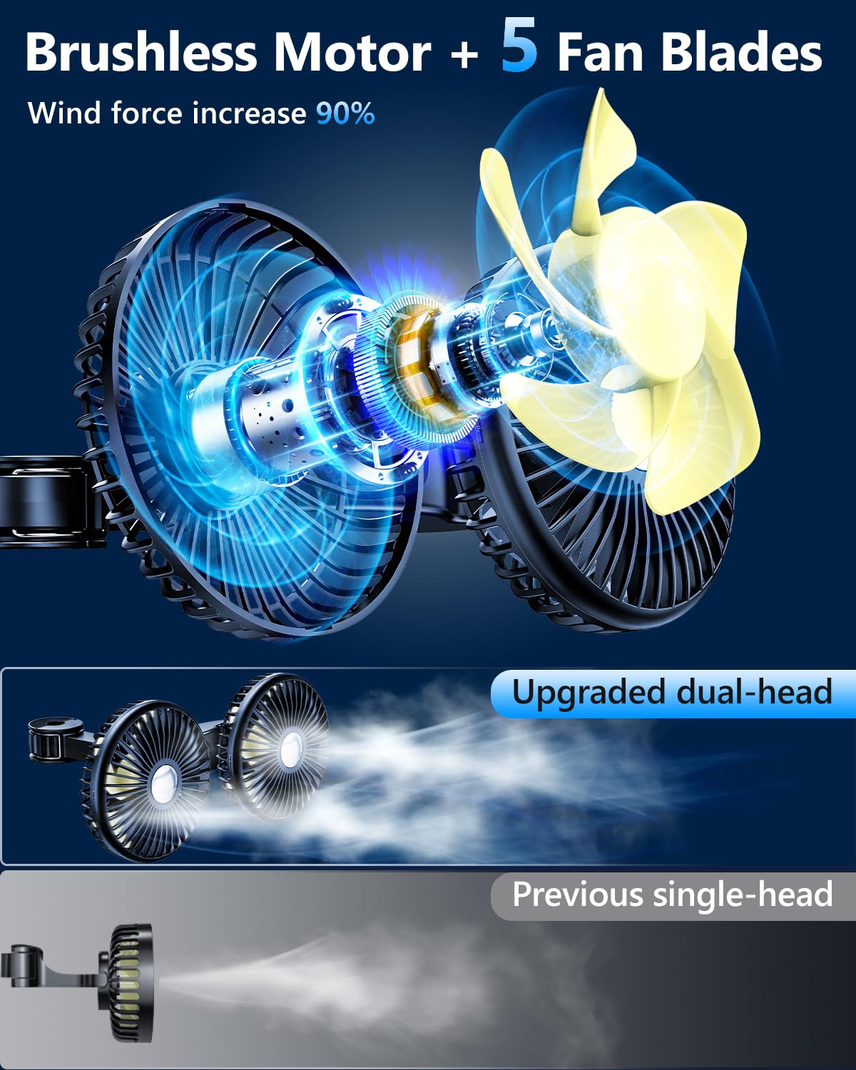 Dicmky Dual Head Car Cooling Fan For Back Seat, Battery Powered Rechargeable Usb Car Seat Headrest Fan For Baby Rear Facing, Sum