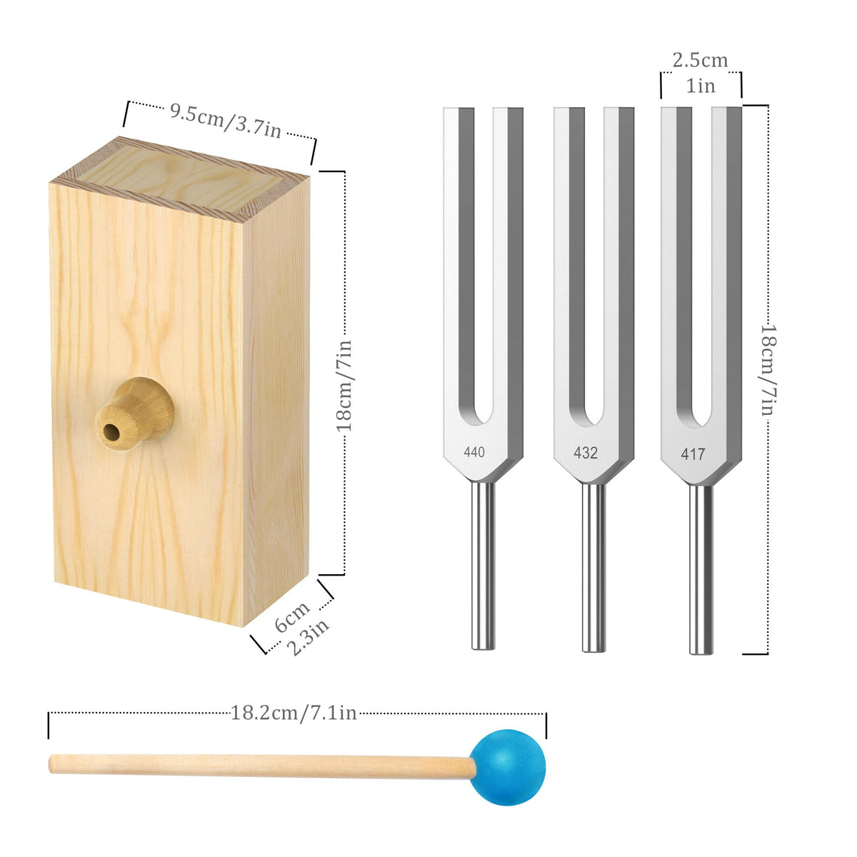 Didibirdi 440Hz, 432Hz, 417Hz 3 Pcs Aluminum Alloy Tuning Fork With Resonance Box And Wooden Hammer,Suitable For Sound Therapy,