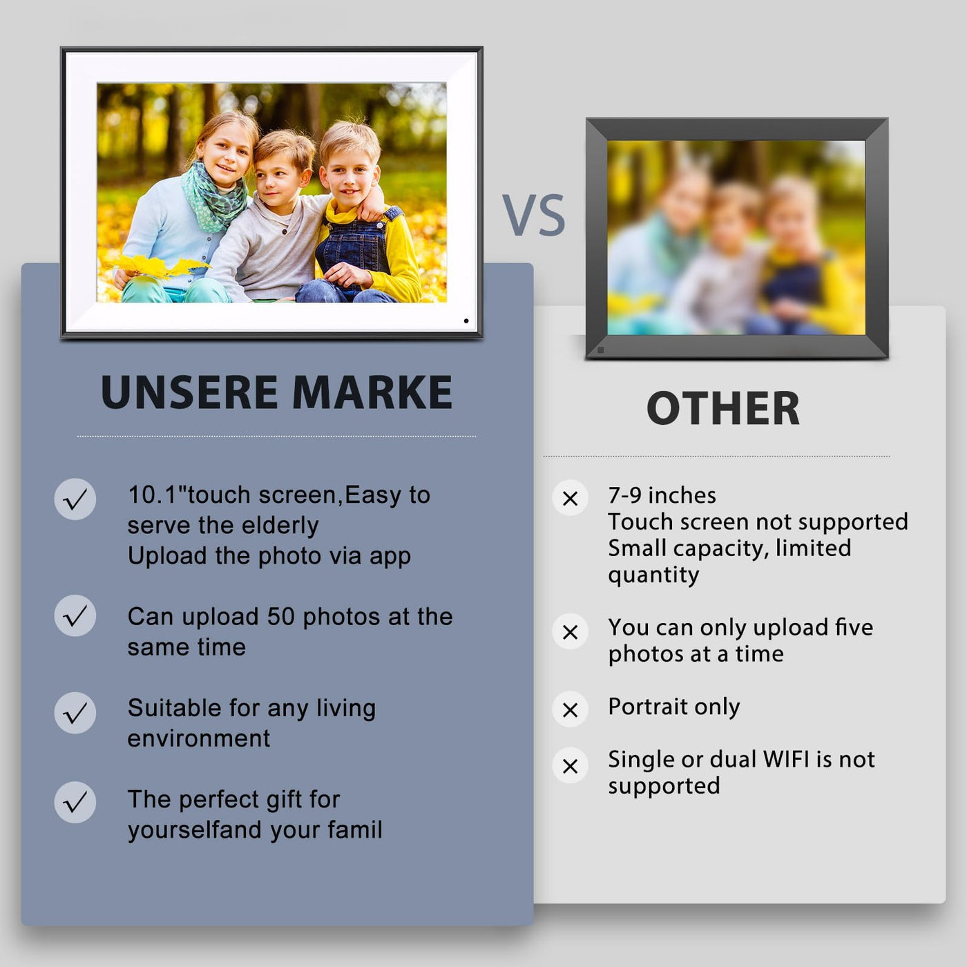 Digital Photo Frame 10.1'' Smart Digital Picture Frame Ips Touch Screen, Auto Rotate, Slideshow, Load Photo Video From Phone T