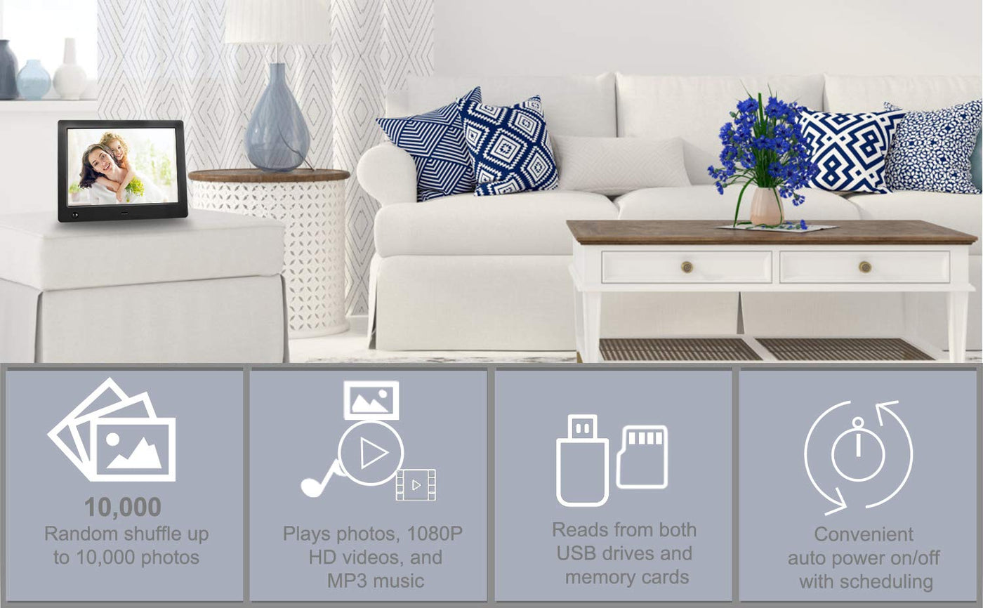 Digital Photo Frame 8 Inch Electronic Photo Frame With Slideshow Hd Ips Display Picture Frame With Motion Sensor/Video/Backgro