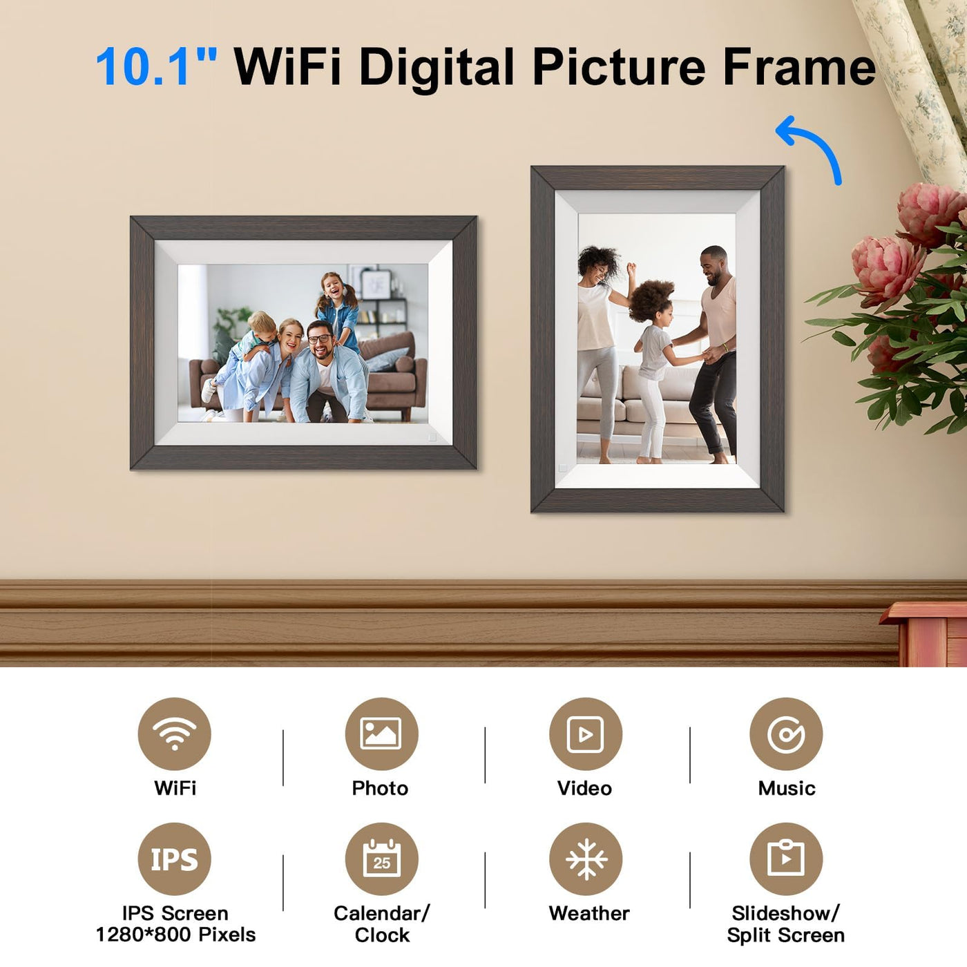 Descriptionthis Elegantly Crafted 10.1-Inch Wooden Digital Photo Frame Seamlessly Blends Innovative Display Technology Into A Timeless Wooden Wi-Fi Photo Frame Design. The High-Resolution Ips Touchscreen Offers An Ultra-Wide Viewing Angle, Stunning 1280X800 Full Hd Resolution And 32Gb Built-In Storage For Tens Of Thousands Of Photos And Video Clips. Built-In Wi-Fi Connectivity Lets You Wirelessly Stream Personal Photos, Music And Movies And Receive Automatic Weather Updates. Use As An Alarm Clock, Desk Calendar Or Weather Station And Rely On The Motion Sensor To Activate The Display When You Walk Into The Room. Create Photo Slideshows, Apply Visual Effects, Add Captions And Zoom In/Out With The Easy-To-Use Interface. Simply Connect Your Smartphone With The Vphoto App To Transfer Media And Control Your Frame Remotely. Backed By A One-Year Warranty, This Do-It-All Digital Photo Frame Makes A Thoughtful Gift Destined To Bring Joy For Years. High-Tech Capabilities Meet Home Decor In An Elegantly Designed Wooden Frame That Keeps Every Cherished Moment Vibrantly On Display.