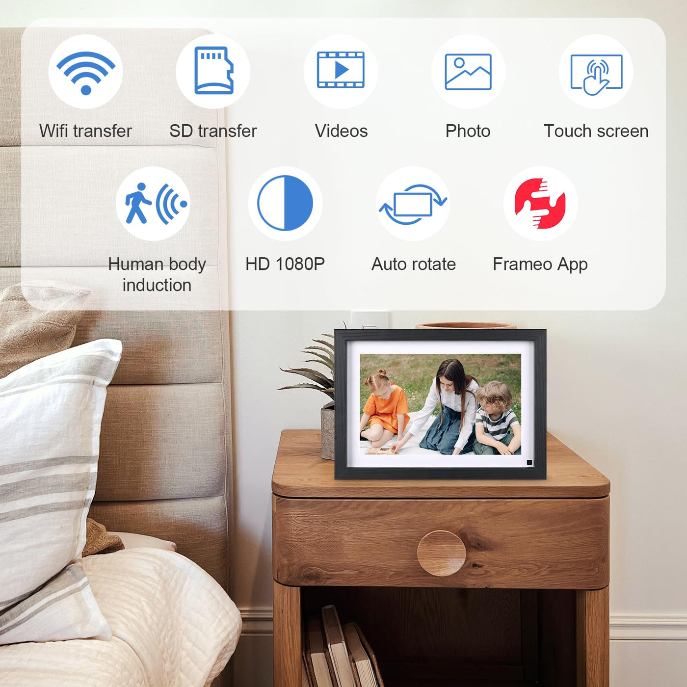 Digital Picture Frame 32G Wifi 10 Inch Digital Photo Frame With Motion Sensor. Free App Share Photos And Videos With Touch Scr