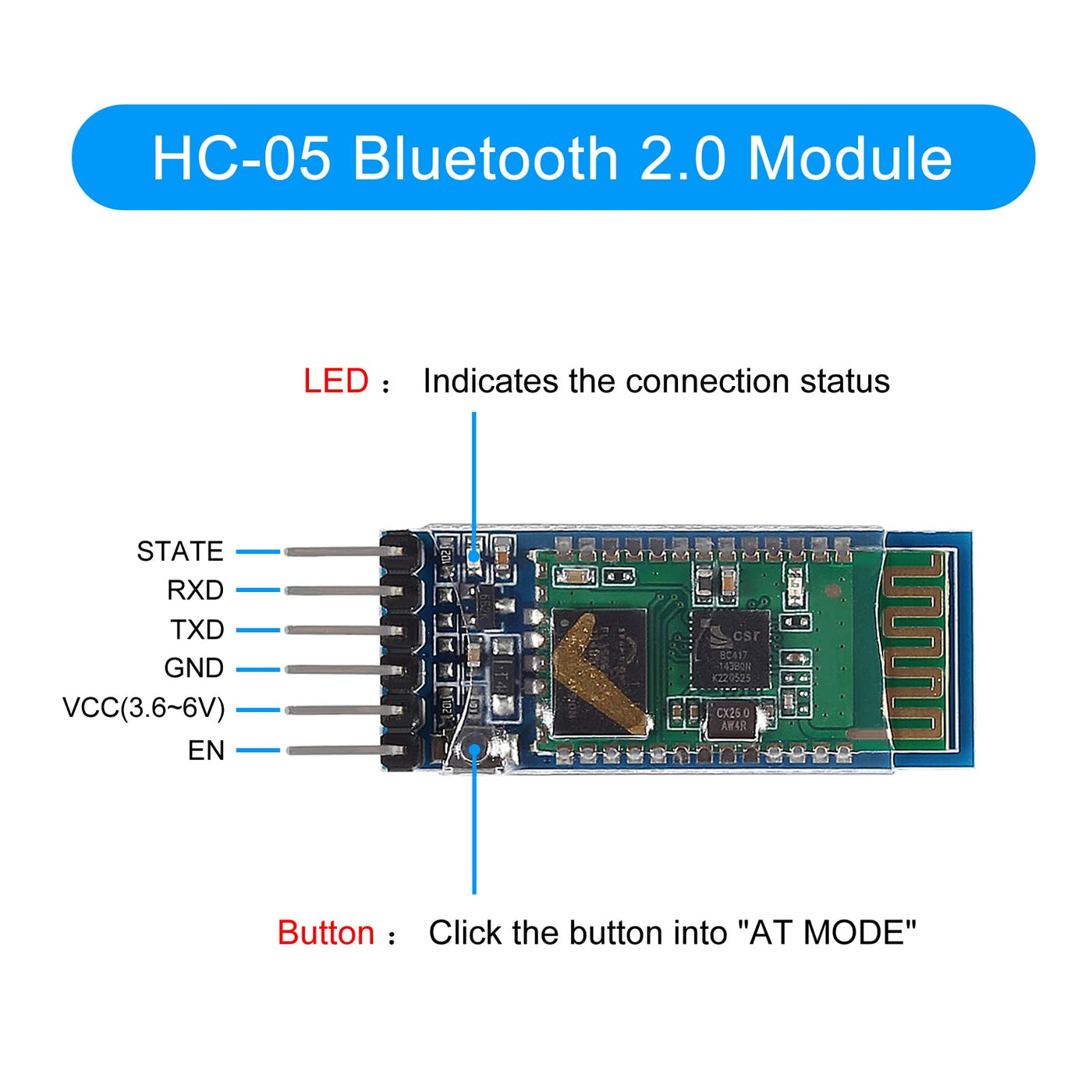 Q: What should I consider when using the HC-05 module in my projects?A: When using the HC-05 module, ensure that you stay within the specified input voltage range of 3.6V to 6V, and consider its compatibility with your specific Arduino board and project requirements for optimal performance.