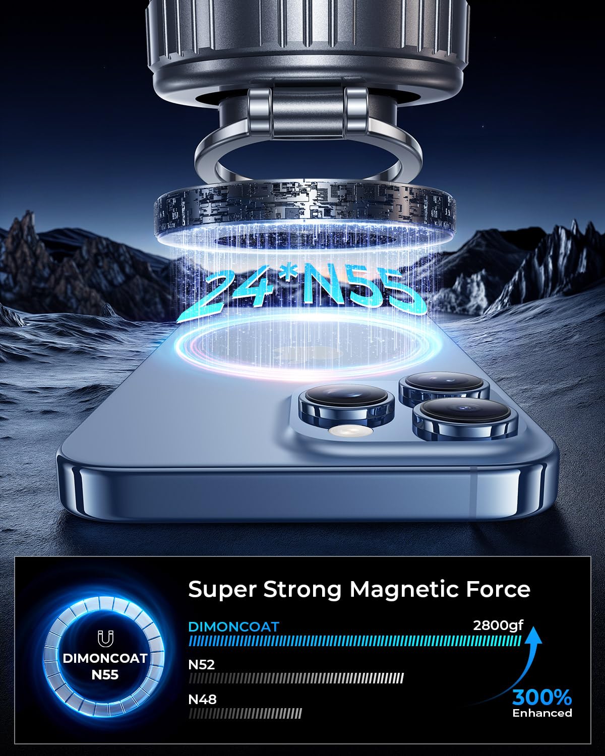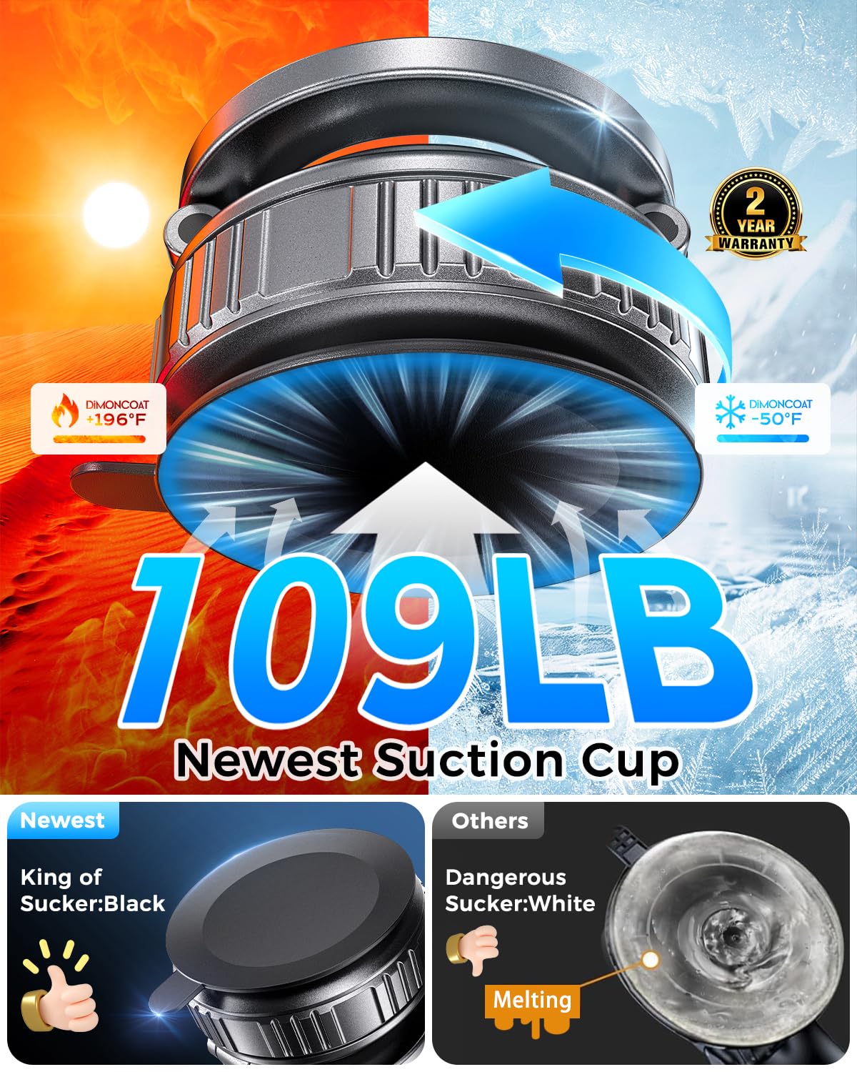 Dimoncoat 2025 Upgraded 360 Rotation Vacuum Magnetic Phone Holder For Car,For Suction Cup Phone Mount Stand [109+Lbs Strongest Suction & Magnetic] Adjustable Swivel Lock, For Your Car/Mirror