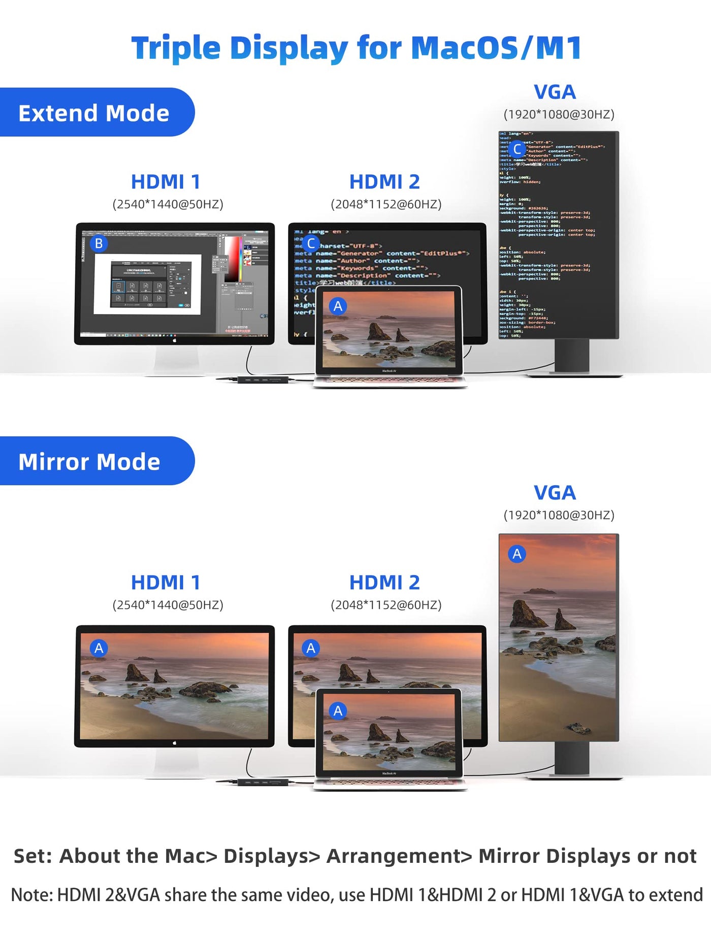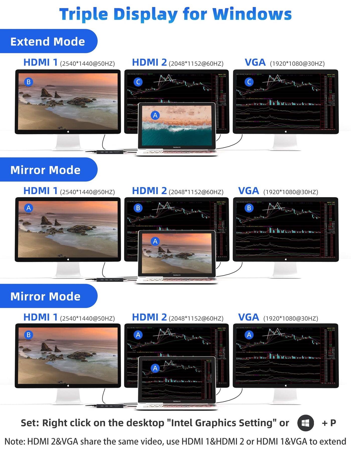 Displaylink Usb Docking Station Dual Monitor, 12 In 1 Usb 3.0 To Usb C Docking Station Laptop Docking Station 3 Monitors With Du