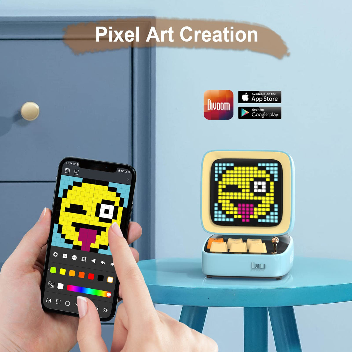 Divoom Ditoo Retro Pixel Art Game Bluetooth Speaker With 16X16 Led App Controlled Front Screen (Blue) �