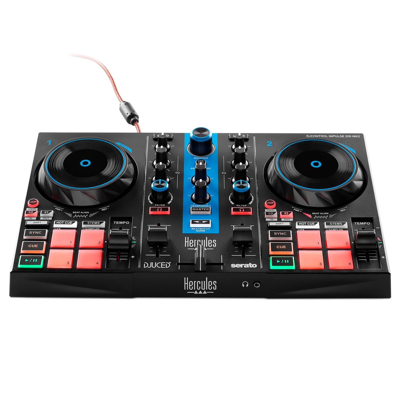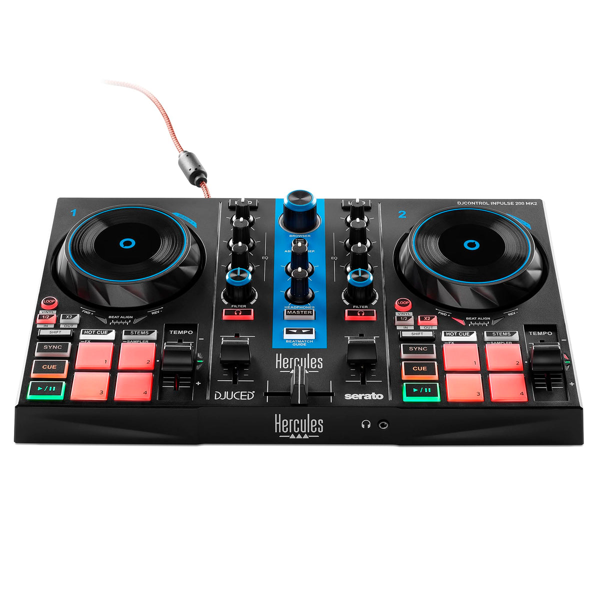 Hercules Dj Djcontrol Inpulse 200 Mk2 2-Channel Dj Controller 2-Channel Dj Controller With 2 Jog Wheels, 8 Beat Pads, Dual 3-Band Eqs With Filters, Per-Channel Gain And Volume Controls, Global Crossfader, Light Guides, Intelligent Music Assistant (Ima), Energy Knob, Stem Separation, And Djuced Software