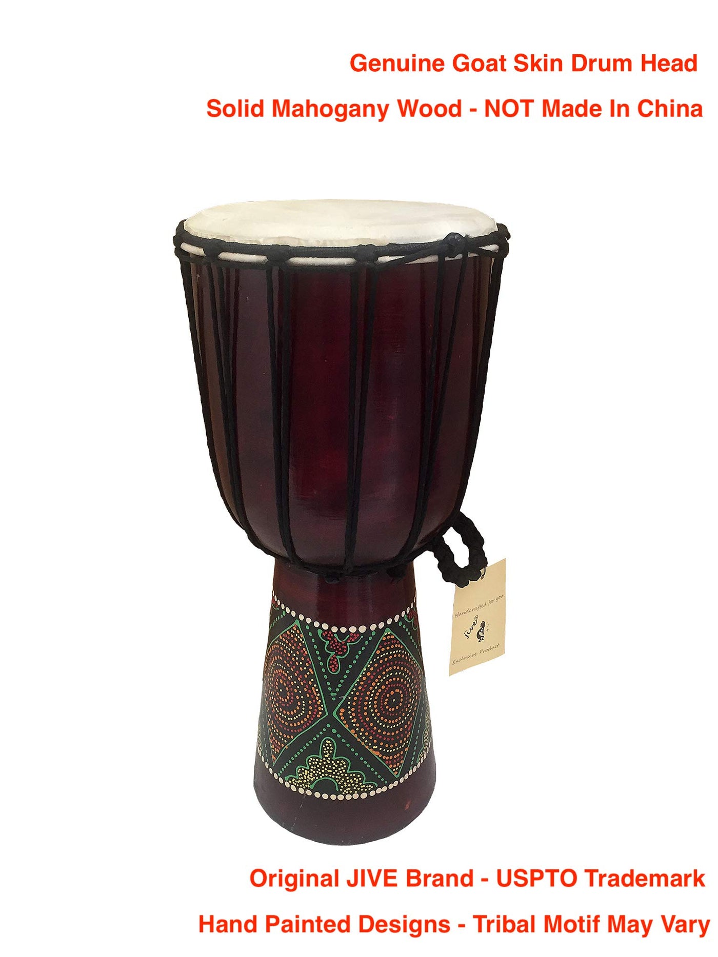 Djembe Drum African Bongo Drum Solid Wood & Hand Painted Large Size 16'' Jive Brand Professional Sound