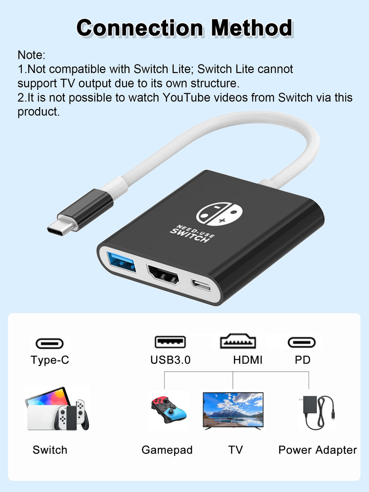 ?Upgraded 3 In 1 Perfect Replacement For Official Nintendo Switch Dock? A Good Replacement For Your Original Nintendo Switch Dock,The Usb C To Hdmi Adapter Work Without Additional Installation Or Software / App Necessary.This Dock Is Only 36G(1.2Oz),With Small Size Lightweight Design, You Can Put It Into Your Pocket And Tack It To Everywhere As Your Like And Enjoy The Switch Games Mode In Tv Mode. | ?4K/1080P Hd Video Output?Equipped With Hdmi Interface,This Switch Tv Docking Station Support 4K And 1080P Video Output(Switch Oled Itself Only Supports 1080P Output,Not Support Switch Lite Tv Mode).Compatible With Most High-Definition Tvs,Monitors,Projectors And Other Devices With Hdmi Interface,Plug And Play. | ?Support Pd Charging,Passthrough Charging?Nintendo Fan Travel Essentials.This Mini Portable Switch Docking Station Lightweight And Small In Size For Convenient Carrying In Your Bag. Perfect For Commute/Travel/Shopping/Picnic/Office.You Can Charge While Playing,Don'T Worry Power Shortage Interrupts Your Game(The Power Supply Is Required While Operating In Tv Mode,Recommended To Use The Original Charger). | ?Broad Compatibility?This Switch Hdmi Adapter Is Perfectly Compatible With Nintendo Switch And Nintendo Switch Oled. This Switch Tv Adapter Is Also Compatible With All Usb C Devices With Video Output Function, This Portable Switch Dock Supports Dp Alt Mode, Thunderbolt 3 & 4, And Usb-C 3.1 Gen 2 Or Up (Like Usb-C 3.2), Like Macbook Pro 2016-2022, Macbook Air 2018-2022, Imac 2017-2021, Mac Mini 2018/2020; Surface Pro 7/7+/8/X; Dell Xps 13/13 Plus/15/17 And More. | ?Your Satisfaction Guaranteed Is Our Primary Policy? If You Have Any Issues Before Or After Order, Please Do Not Hesitate To Contact Us For A Pleasant Solution, Thank You You So Much For Your Trust And Order!We Would Reply Most Email Within 18 Hours.