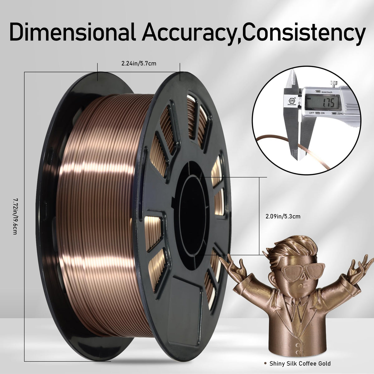 Do3D Silk Coffee Pla Satin Shiny 3D Printer Filament, 1.75Mm Diameter 1Kg Spool 2.2Lbs For Fdm 3D Printers