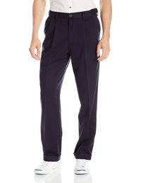 Dockers Mens Relaxed Fit Comfort Khaki Pants Pleated, Dockers Navy (Stretch), 44W X 32L