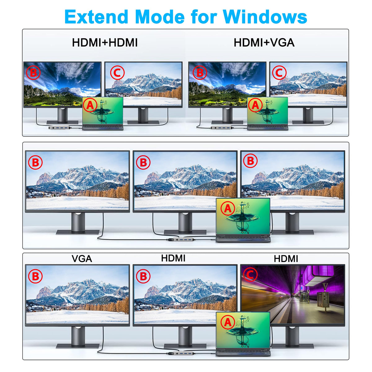 Docking Station Dual Monitor For Dell/Hp/Lenovo/Surface Laptop