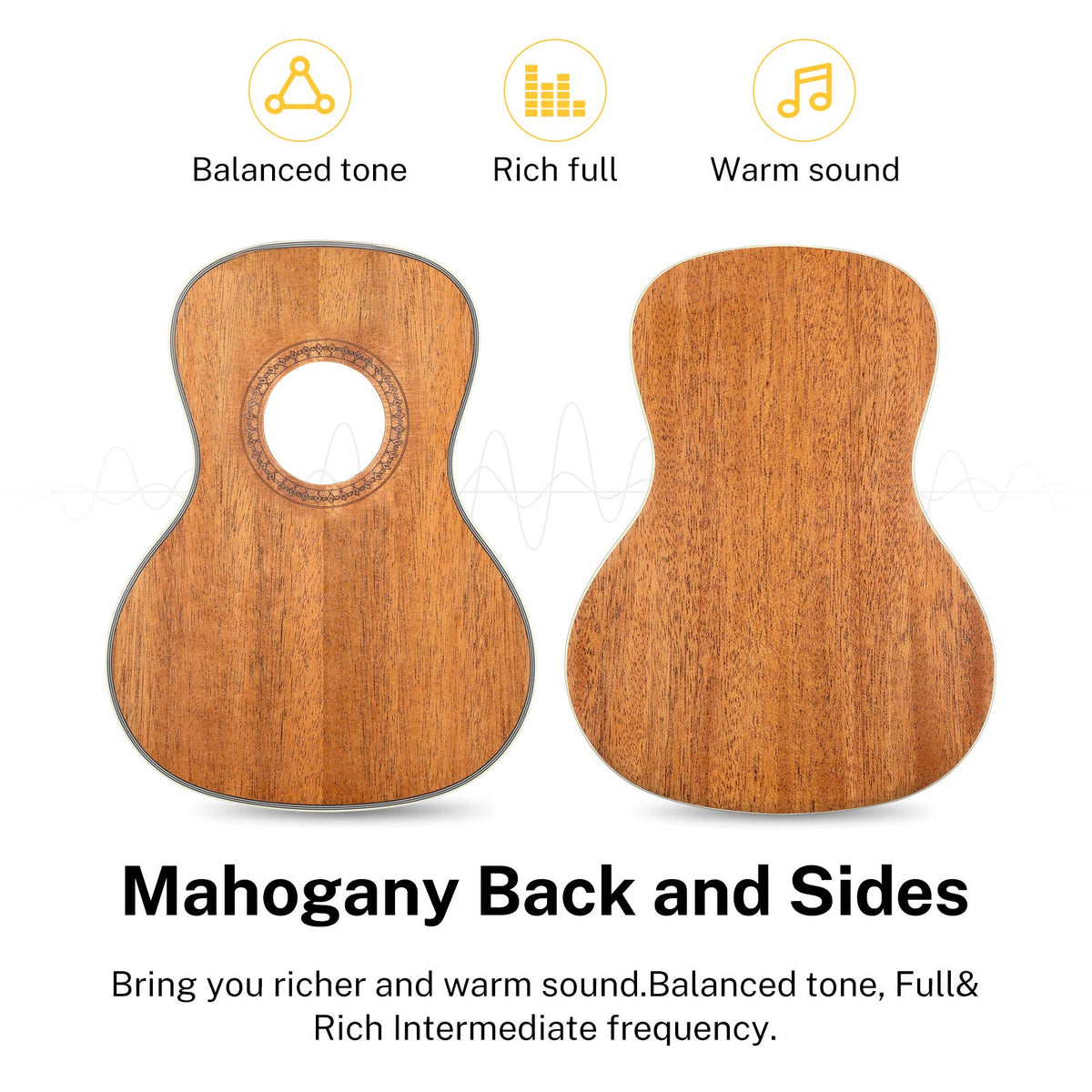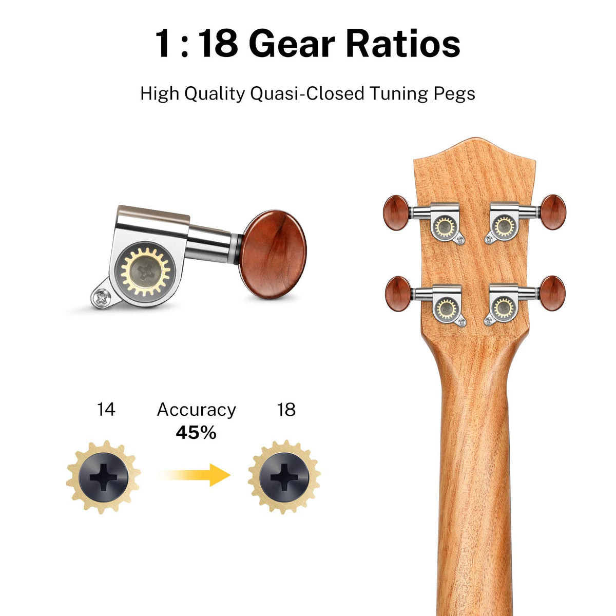Specifications Size: Concert 23 Inch Hand Orientation: Right Back & Sides: Mahogany Body Top: Mahogany Neck Material: Mahogany Neck Shape: C Shape Position Inlays: Dots Inlays Rosette: Concentric Rings Number Of Frets: 18 Tuning Machines: Donner Unique Design Weight: 1300G (With Box) Package Included: 1 X Donner Duc-200 Ukulele 1 X Ukulele Bag 1 X Ukulele Strap 1 X Carbon Nylon String 1 X Donner Tuner