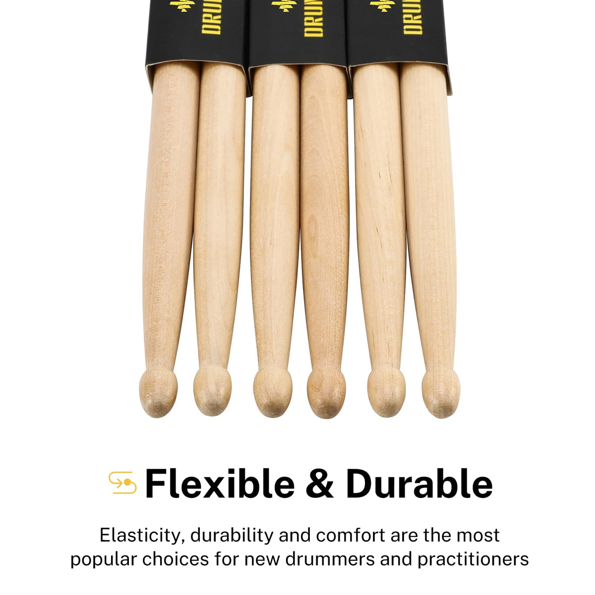 Donner Drum Sticks, 3 Pairs 5A Drumsticks Classic Maple Wood Snare Drumsticks With Carrying Bag, Christmas Birthday Gift, Great
