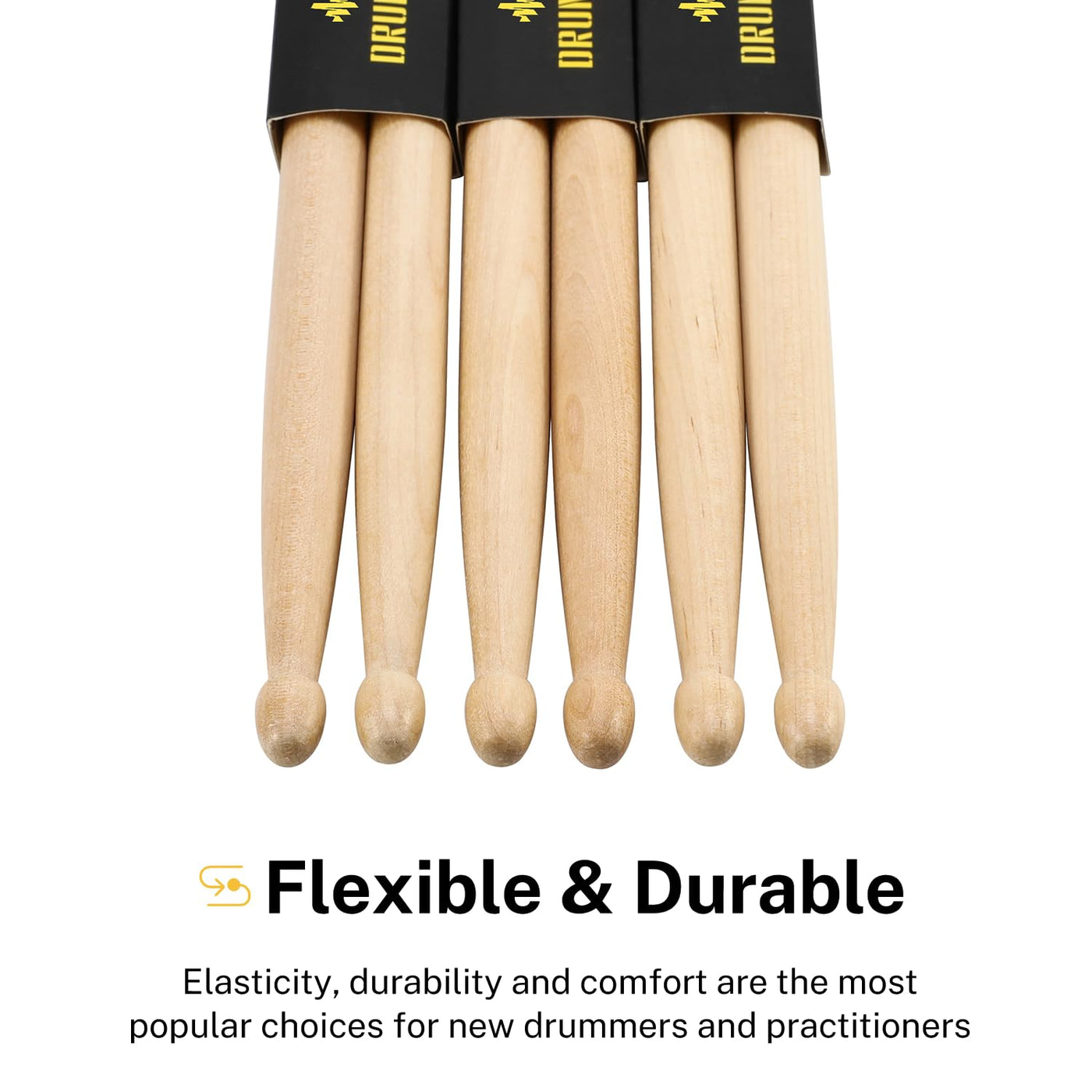 Reliable Material -Made Of High Hardness And Corrosion-Resistant Maple Wood, Donner 5A Drumsticks Come With High Durability, Good Resilience. The Material Is Environmentally Friendly, Non-Toxic And Odorless. | User-Friendly - The Top Of Drumsticks Apply Drop-Shaped Design, Suitable With Normal Drum Set Or Dumb Drum Pads, Wonderful In Daily Practice And Performance, Also Easy For Beginner And Students Drummers To Play, | Humanized Design - With Well-Polished Surface And Comfortable Feeling, The Donner 5A Drumsticks Would Reduce Wrist Fatigue, And Non-Slippery, Light To Hold During Long-Time Playing Just Enjoy Each Beat With Donner As You Wish. | Comes With What You Need - The Package Includes 3 Pairs Of 5A Maple Drumsticks And A Carrying Bag, Together With 30 Days Unconditional Guarantee Backed Up By Our Awesome Customer Support Team Ready To Help. | Notice - Donner Has Upgraded Its Logo, But The Quality Of The Products Is The Same As Always. We Sincerely Apologize For The Confusion Caused By Your Receiving Products With Different Logos Due To The Different Production Batches.