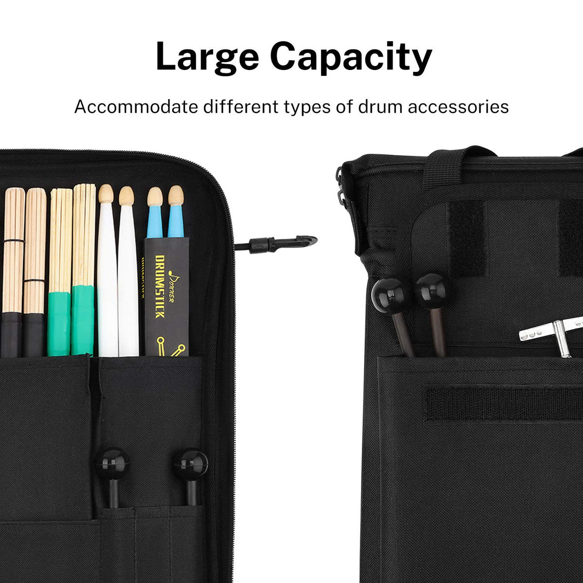 Donner Drumsticks Bag Holder Thickened Large Capacity Drum Sticks Bag Hangable Portable For Drumsticks Brushes Mallets Up To 12