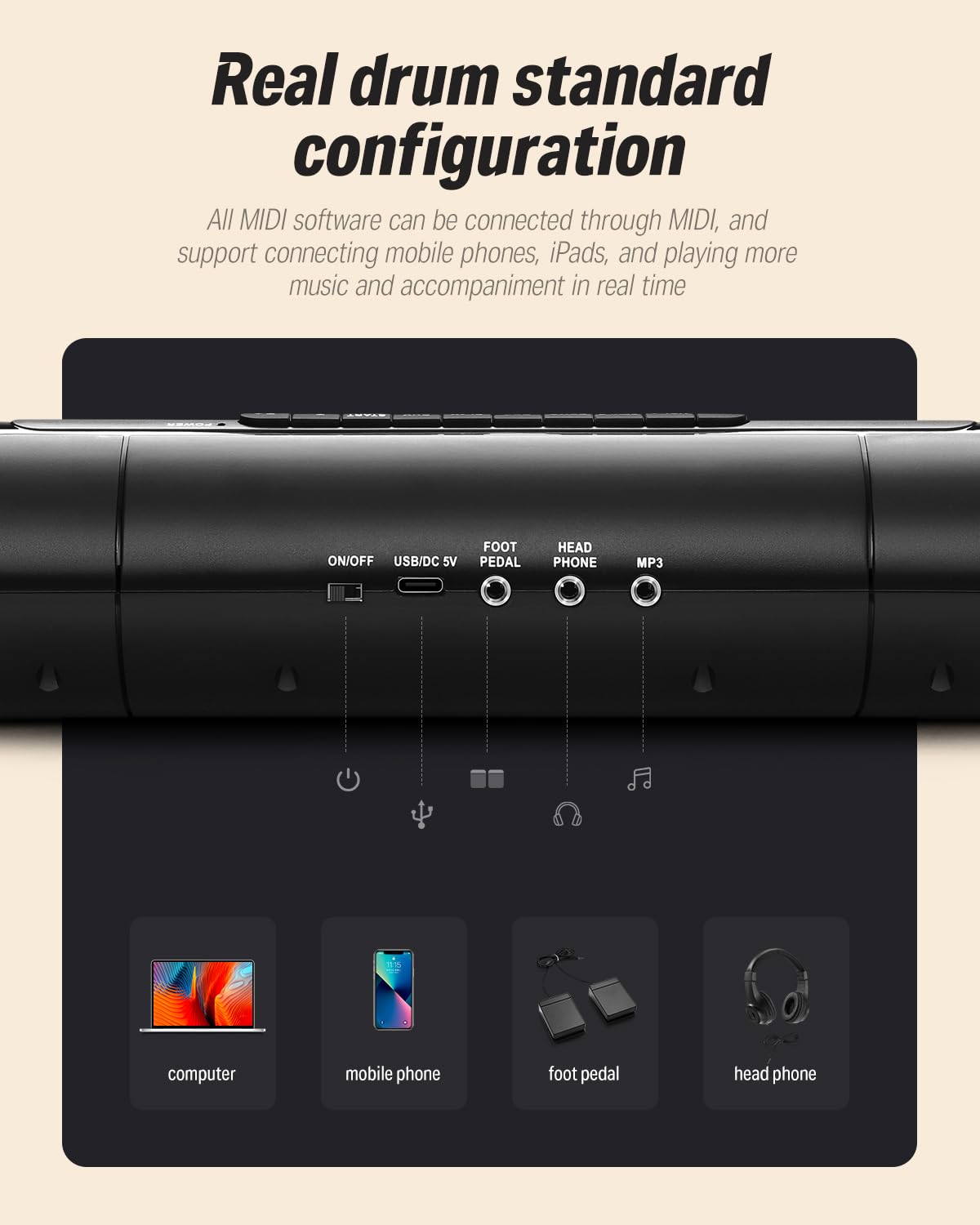 Donner Electric Drum Set Upgrated, 7 Pads Electronic Drum Pad Roll Up Quiet Drum Pad Built In Speaker, 40 Drum Lessons Included,