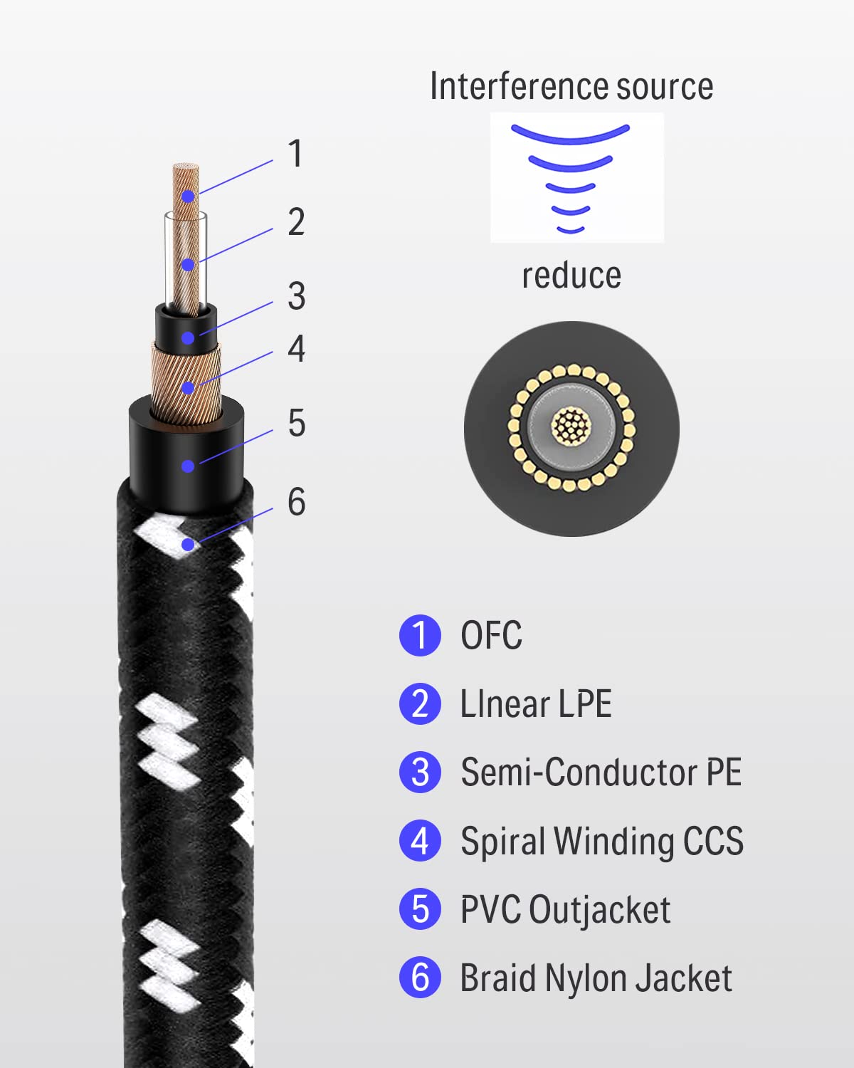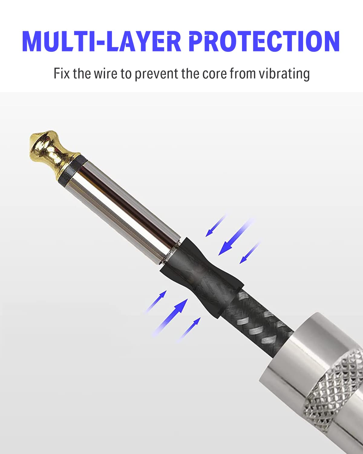 Q: What makes the Donner Guitar Cable suitable for electric instruments?A: The Donner Guitar Cable features 24AWG oxygen-free copper center conductors that ensure enhanced signal transfer, making it ideal for electric guitars and bass amplifiers. Its low capacitance of 28pF/ft helps maintain uncolored tone, crucial for reproducing the natural sound of your instrument.