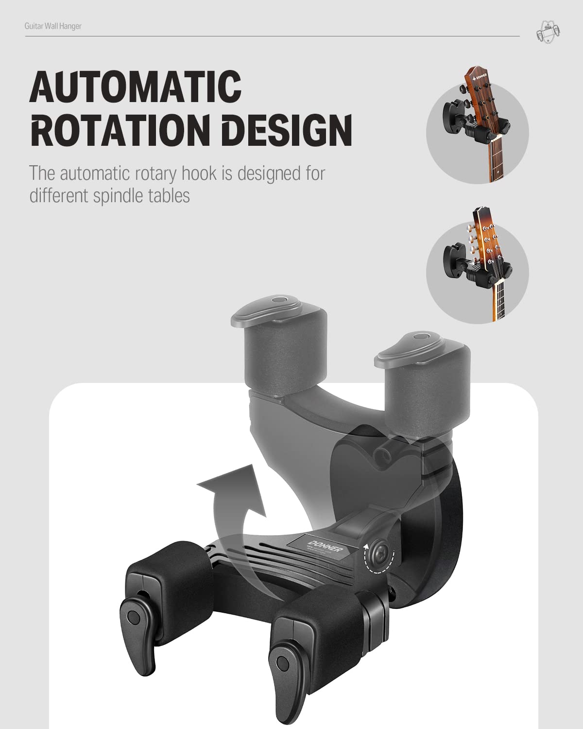 Product Description The Donner Wall Mount Guitar Hanger Is Uniquely Designed With A Deep Cradle And Auto Locking Gate. Lock Your Guitar Automatically When Putting Guitar Neck On The Arm. And Automatically Release When Lifting Your Guitar. Extremely Convenient Comparing To Traditional Manual Locking. Secure The Instrument Neck Inside Support Arm, Protects Your Instrument From Dropping Of The Hanger. This Means That Not Only Is This Guitar Hanger Compatible With All Types Of Guitars But It Also Adapts To Your Environment, Withstanding Pressure From All Directions, Providing You With Peace Of Mind And Your Pride And Joy, With The Security That It Deserves. And Helps You To Save More Space In Your Room. It Makes Getting Guitar Up And Down Easier, More Convenient To Play. Suitable For A Variety Of String Instruments Such As Acoustic Guitar, Classic Guitar, Electric Guitar, Bass, Banjo, Mandolin And So On. Specifications: Colors : Black Material : Eva Application : Guitar, Bass, Banjo, Mandolin Arm Length: 75Mm ( 2.95 Inch ) Maximum Load Capacity: 10Kg(22Lbs) Size : 105 * 145 * 82Mm (4.1 * 5.7 * 3.2 Inch) Net Weight : 153G Package Included: 3 X Donner Guitar Wall Mount Hanger 6 X Screws